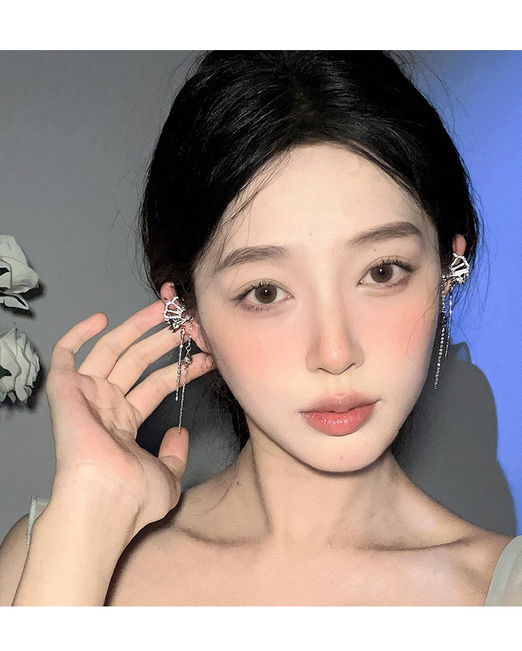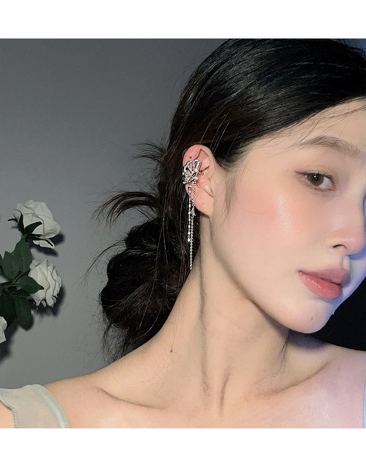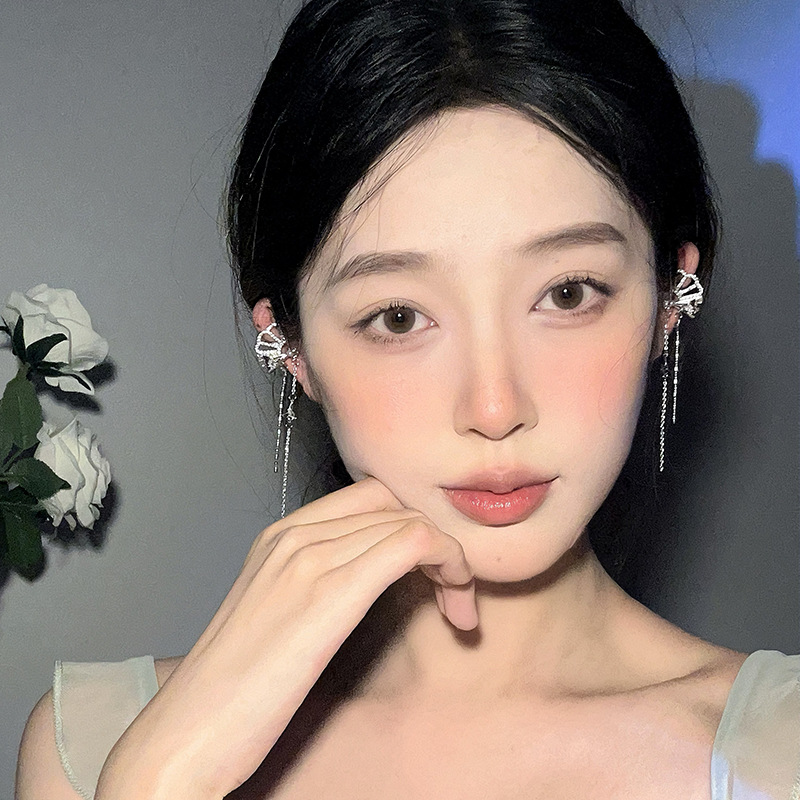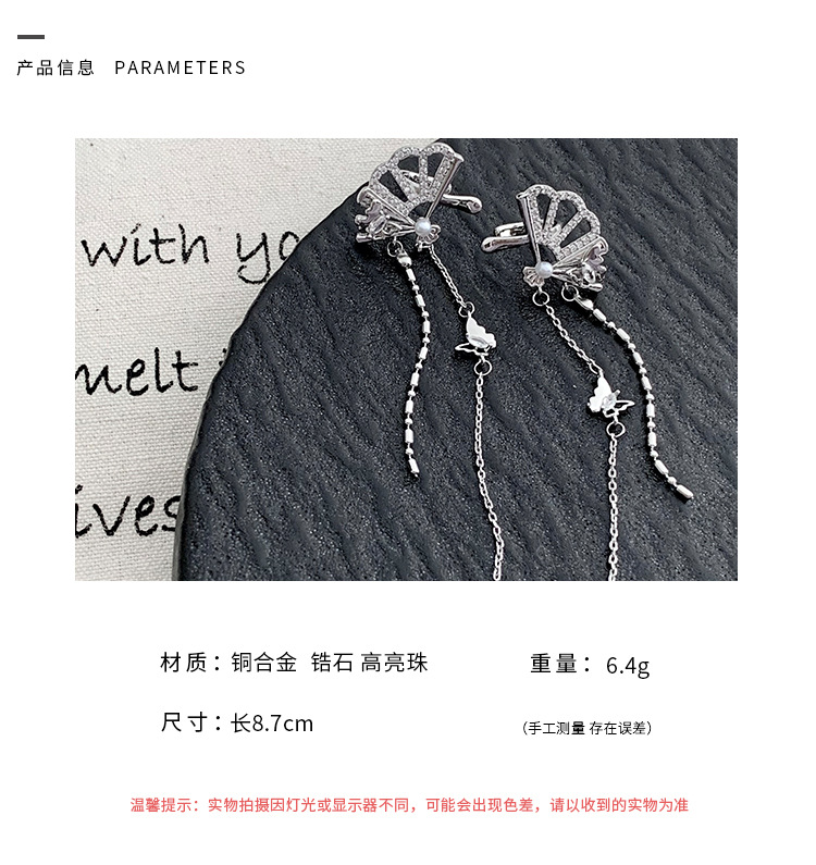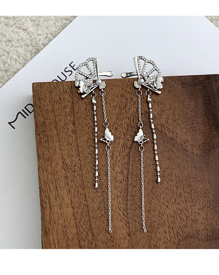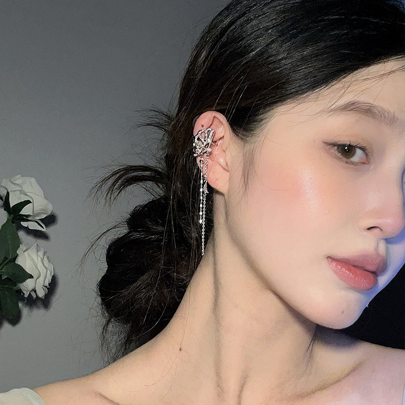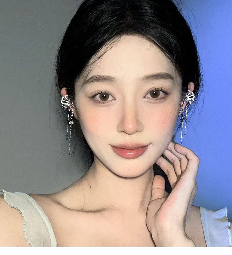 新中式国风扇子长款蝴蝶流苏耳夹无耳洞耳骨夹小众设计感镶钻耳饰