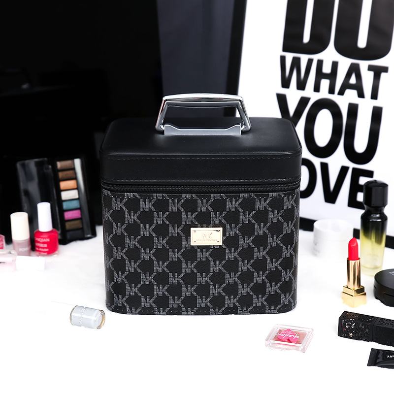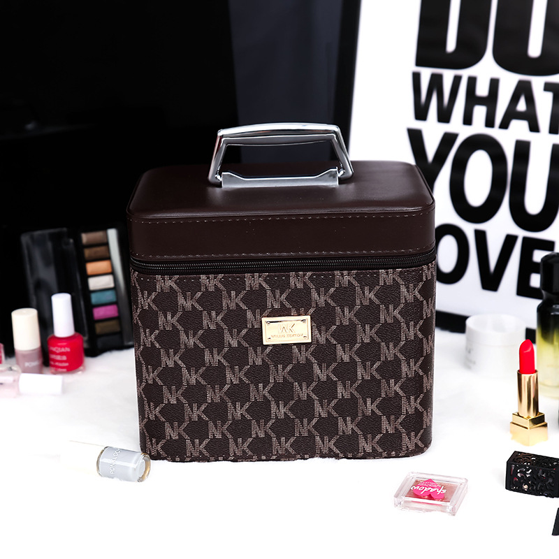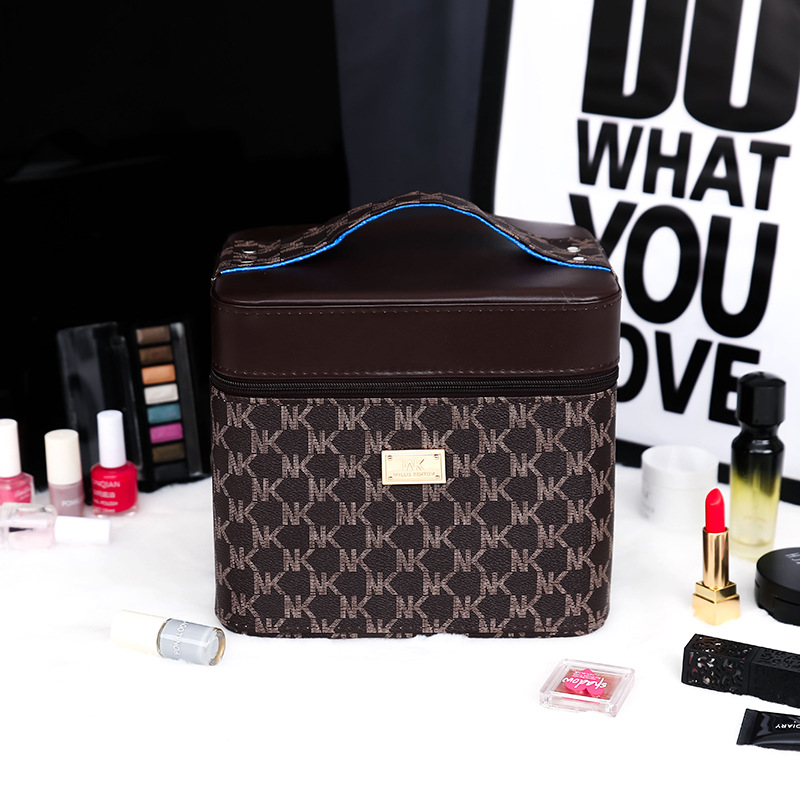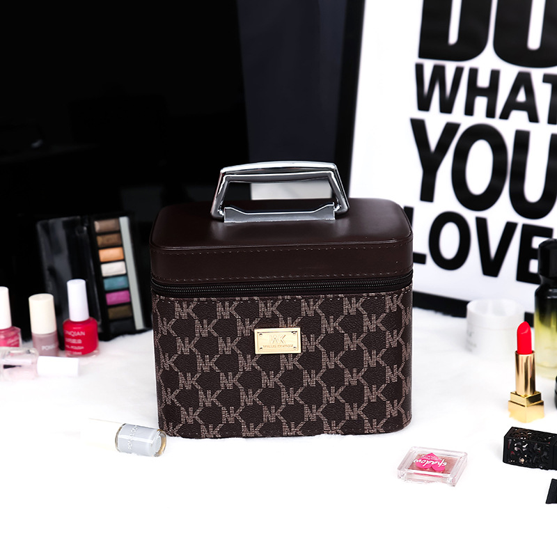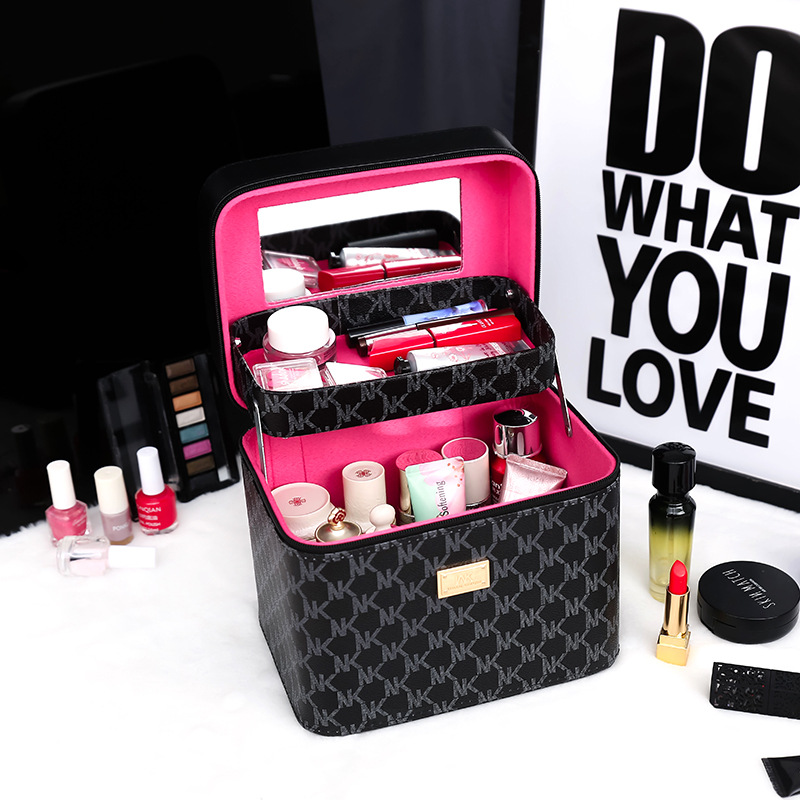新款双层韩版大容量化妆箱 字母印花手提化妆收纳箱 化妆品收纳盒