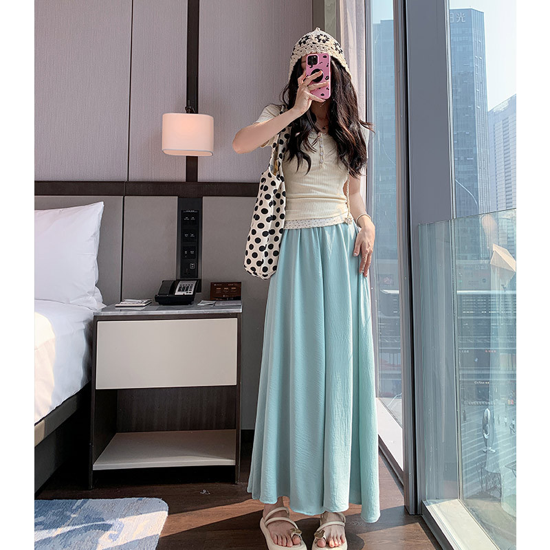 湖蓝色裙裤女春夏新款小个子a字半身褶裙高腰垂感休闲阔腿裤