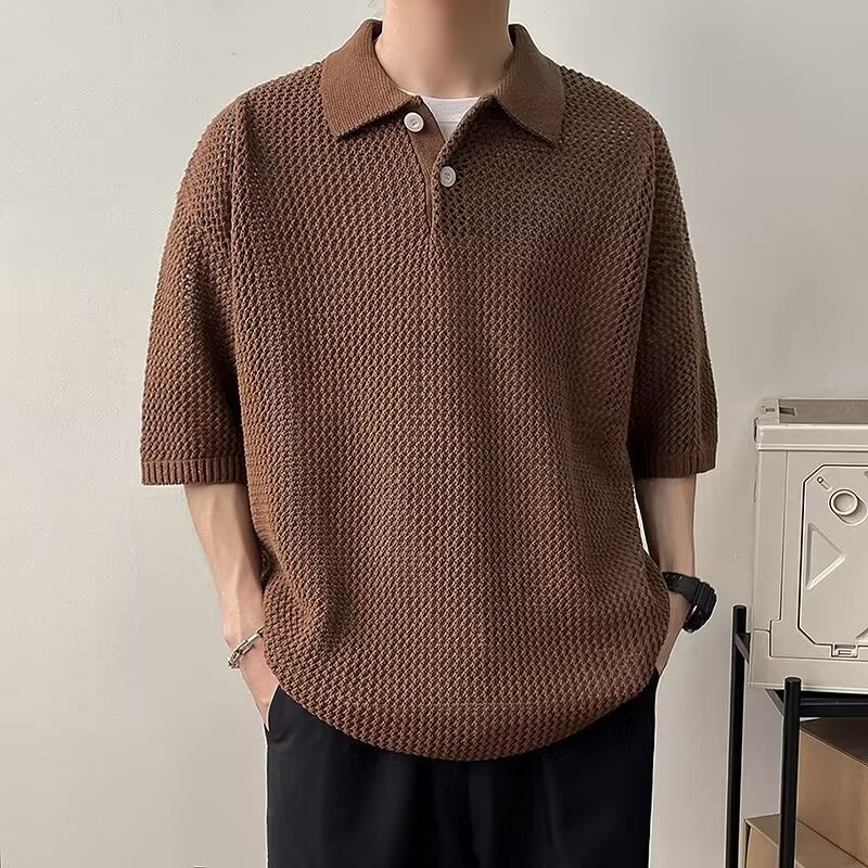 夏季镂空高级感针织polo衫男潮宽松帅气透气翻领半袖t恤