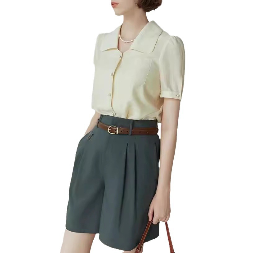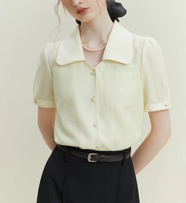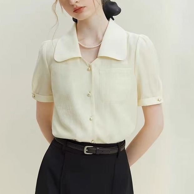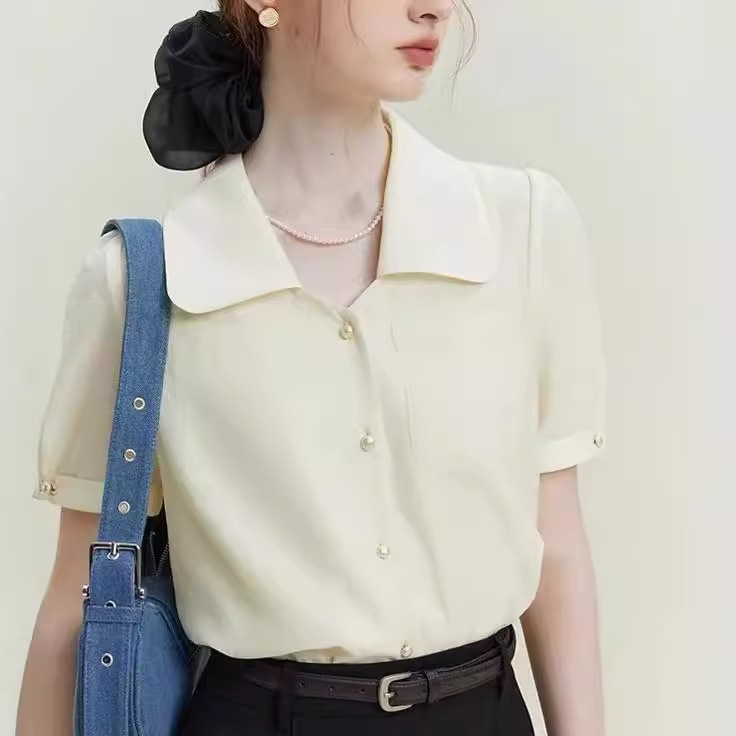 法式气质短袖衬衫女夏季新款上衣温柔甜美