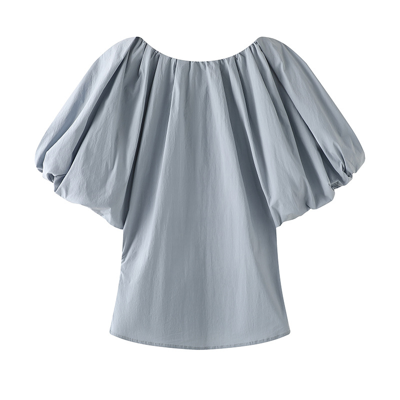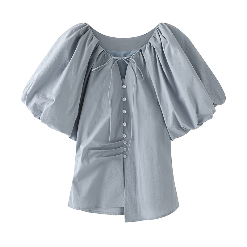 夏季新款法式短袖衬衫设计感小众绑带收腰灯笼袖高级感上衣女