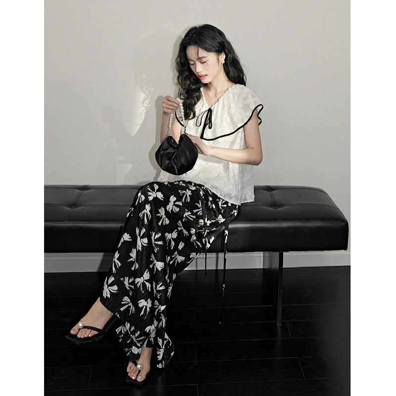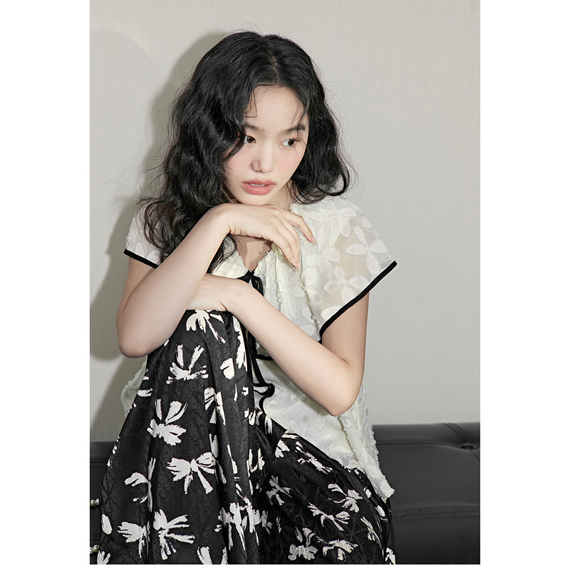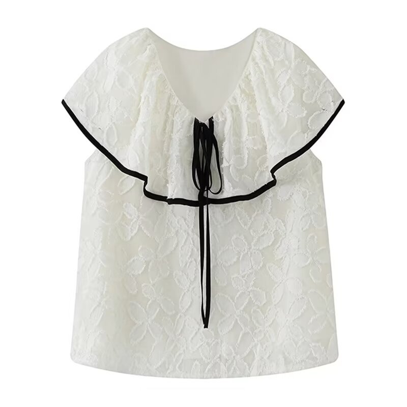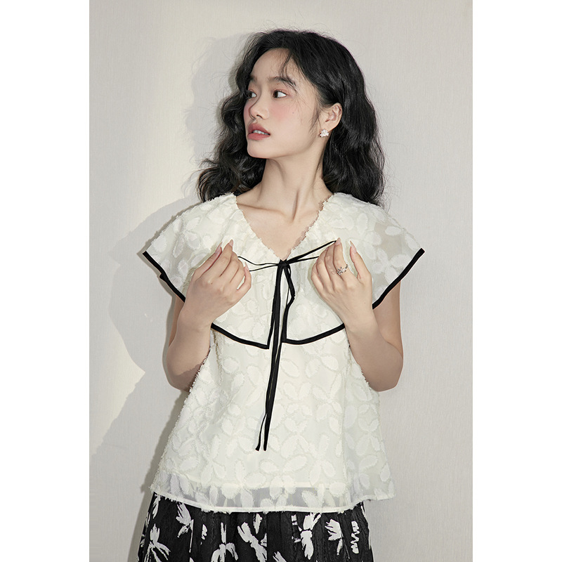 法式娃娃领小飞袖薄纱衬衫娃娃衫夏新款无袖外穿