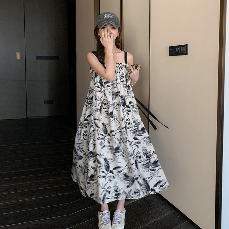 法式碎花吊带连衣裙夏季显瘦气质高级感水墨风海边度假休闲吊带裙