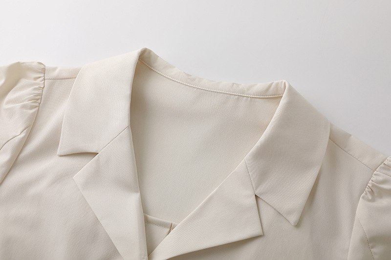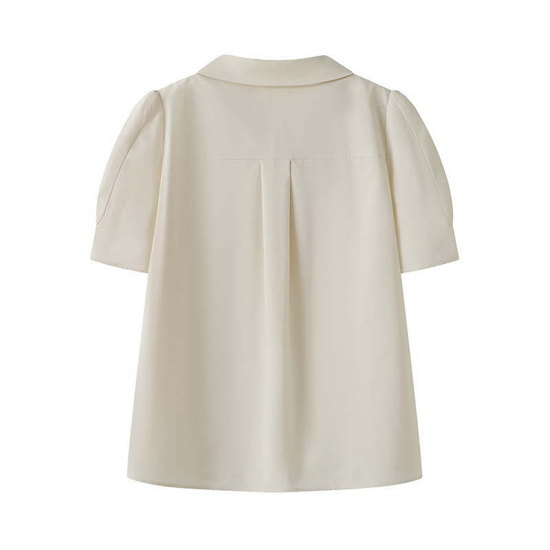 春季新款法式古巴领翻领泡泡袖衬衣气质衬衫女