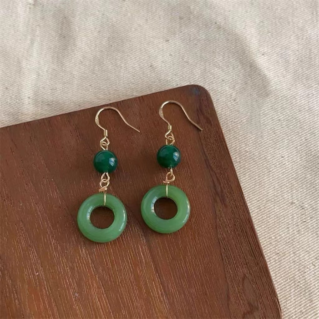 玉石平安扣耳环玉环复古新中式国风清冷古风耳饰古典汉服旗袍配饰