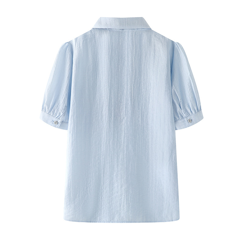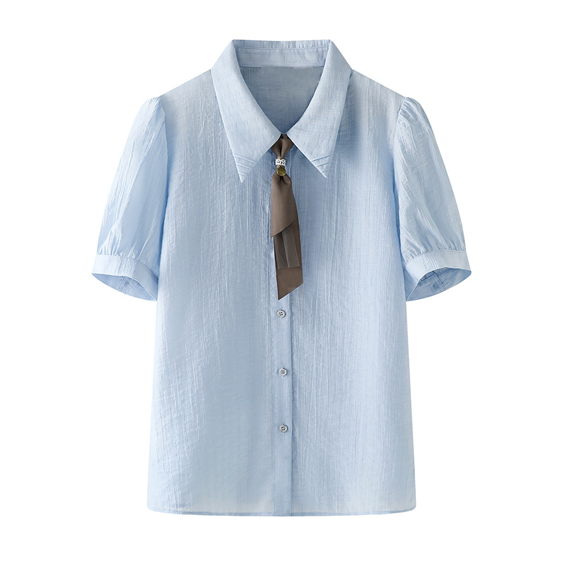 夏季新款减龄学院风翻领短袖衬衫泡泡袖领结上衣女