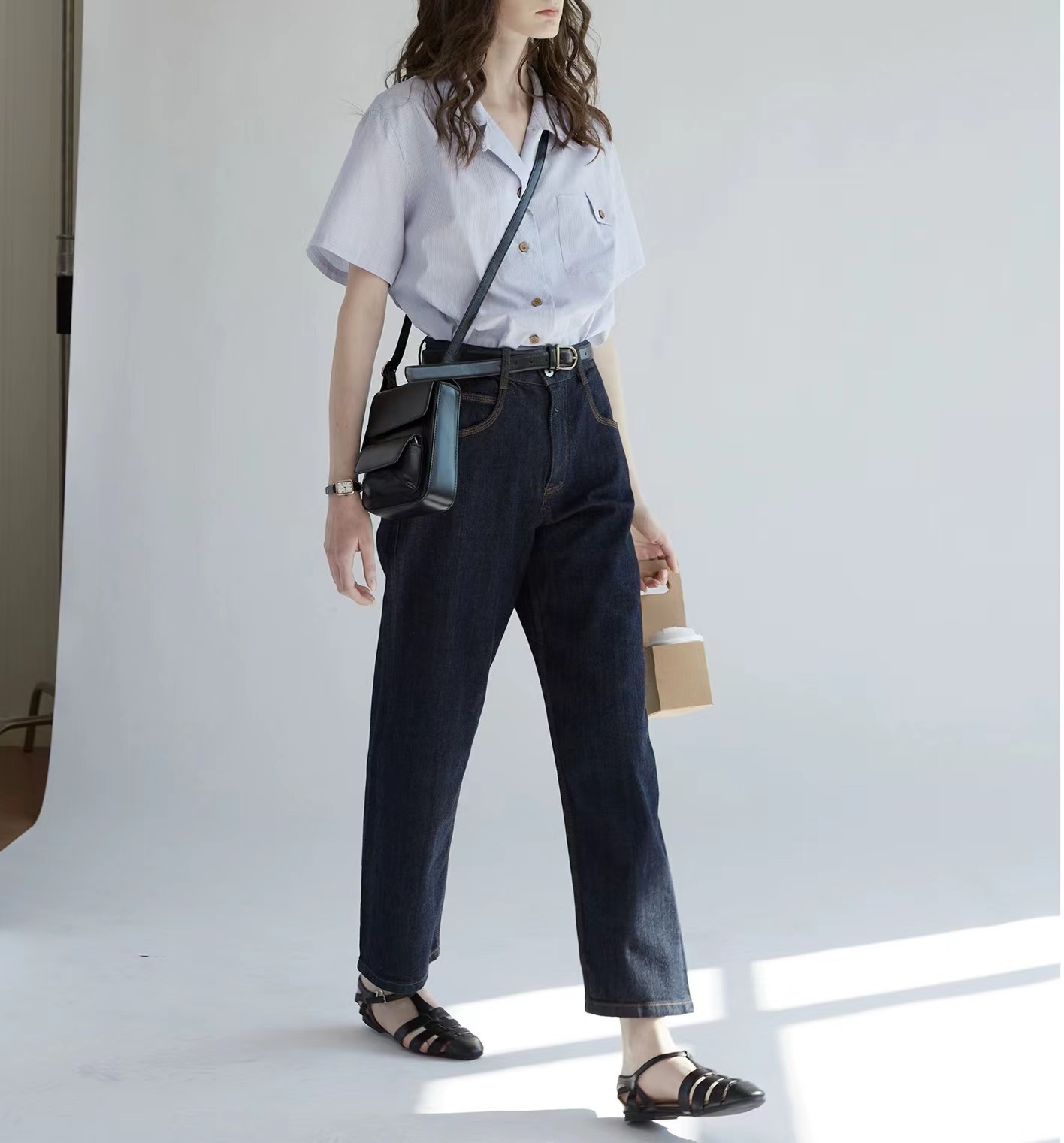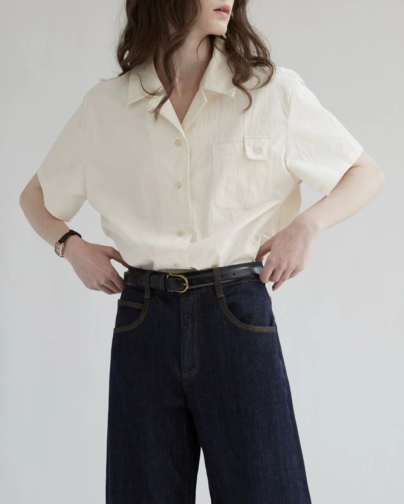 “知识分子”春夏Vintage少女 两色复古古巴领小袋盖设计感衬衫