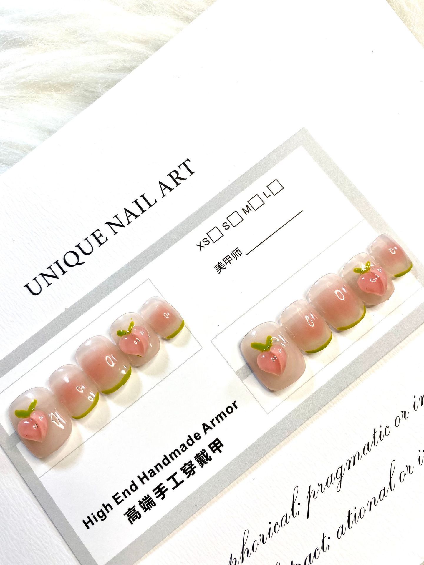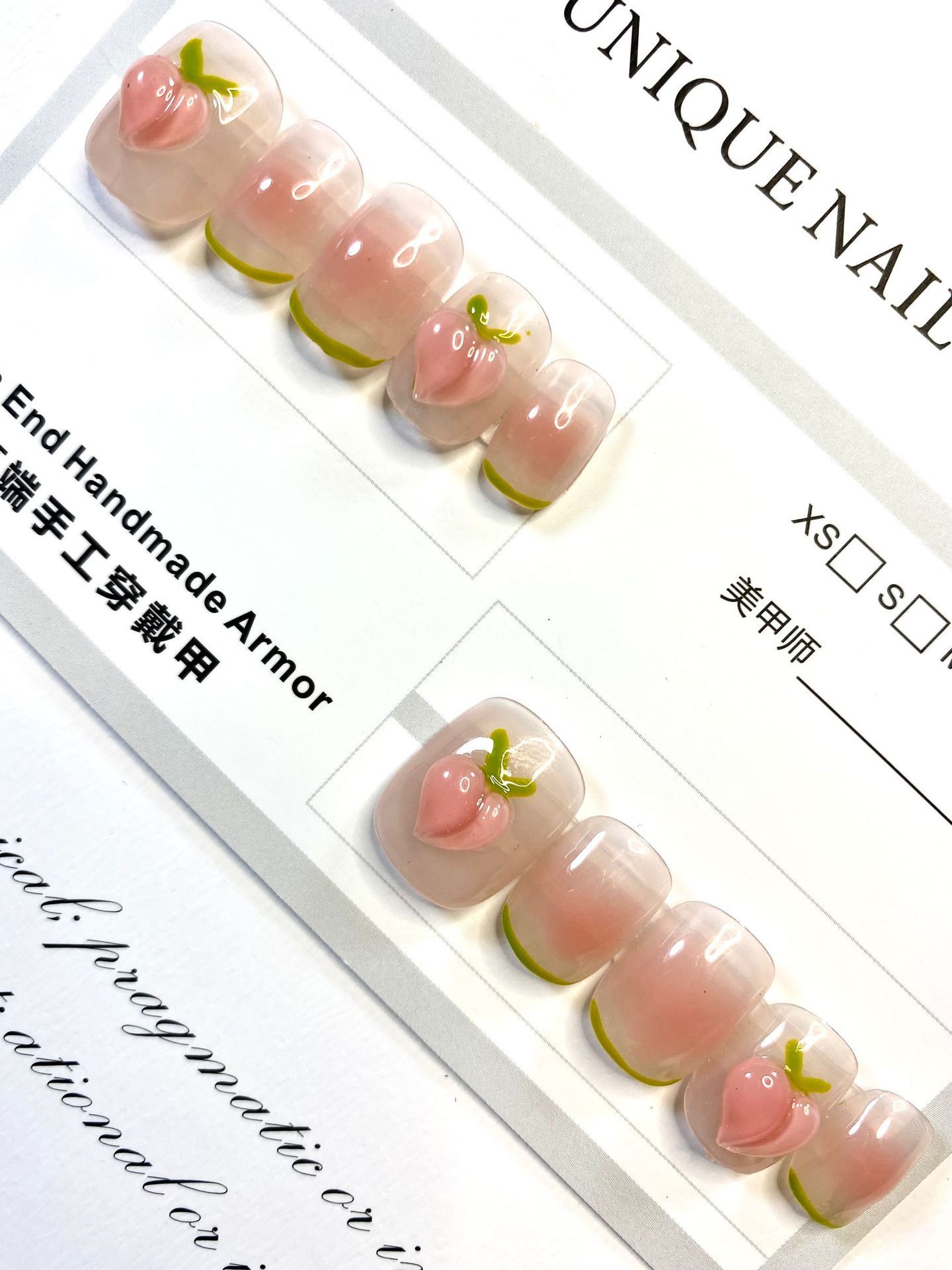纯手工光疗穿戴甲 腮红水蜜桃穿戴甲批发成品重复使用美甲贴