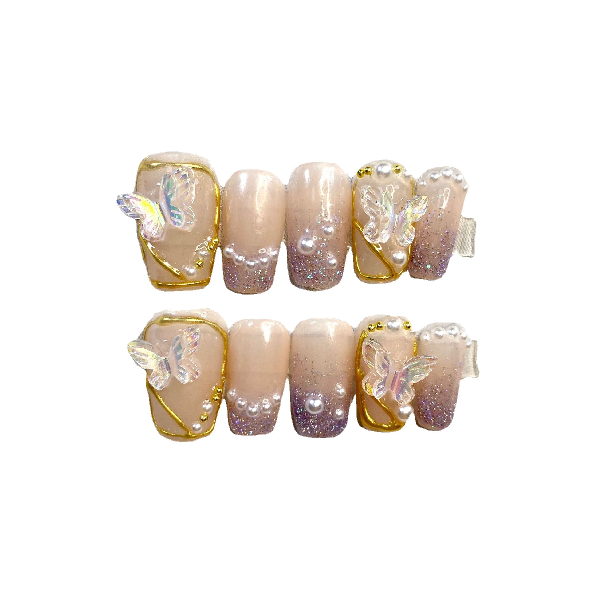 纯手工光疗穿戴甲 短梯蝶恋花穿戴甲批发成品重复使用美甲贴片