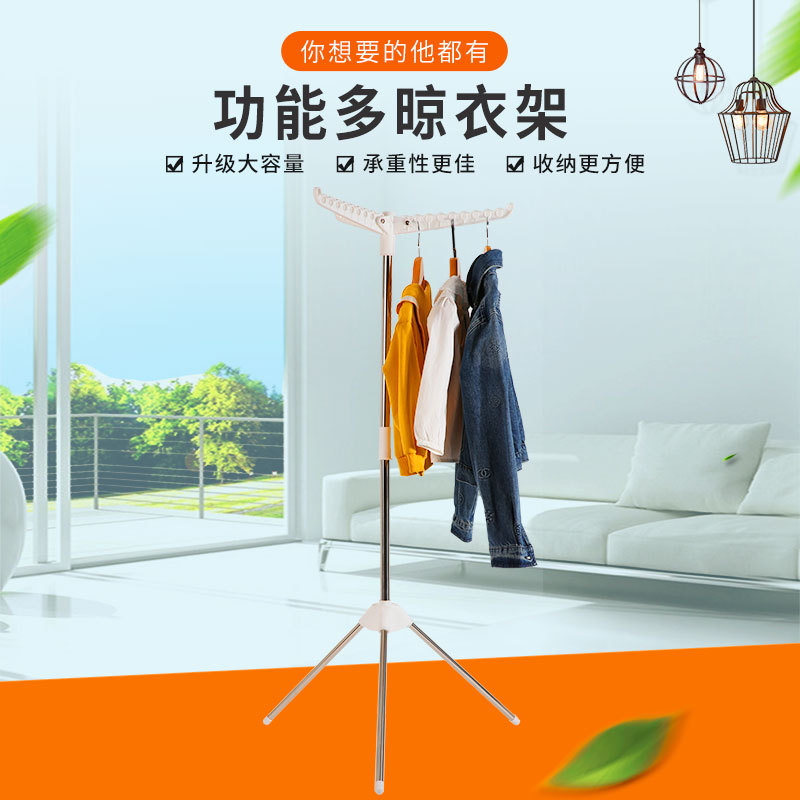 晾衣架落地衣帽架 室内不锈钢三角家用挂衣架 简易收缩创意凉衣架