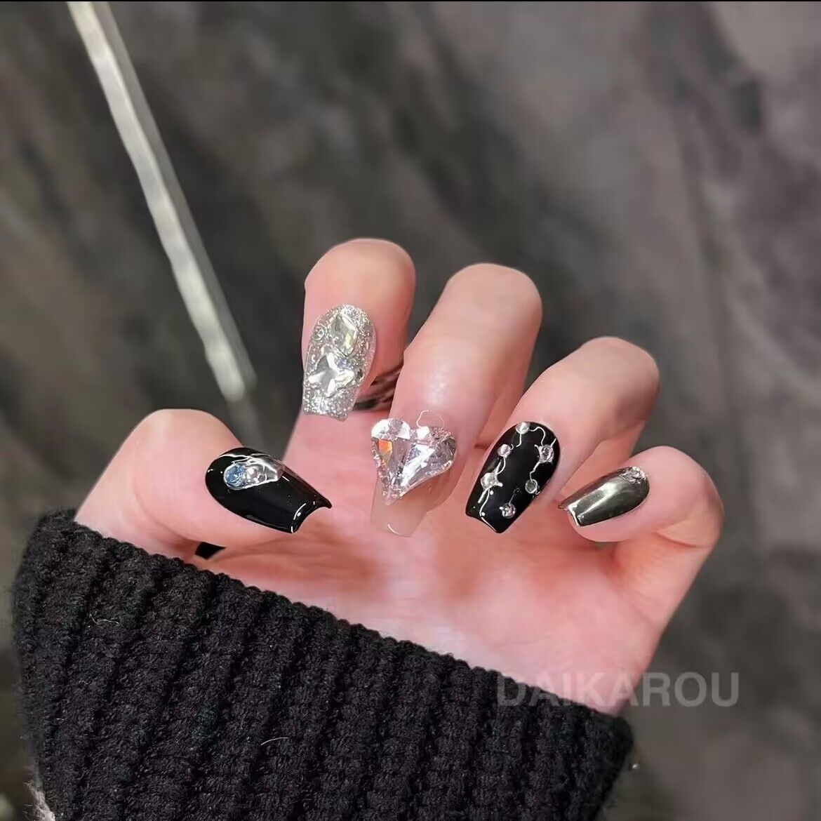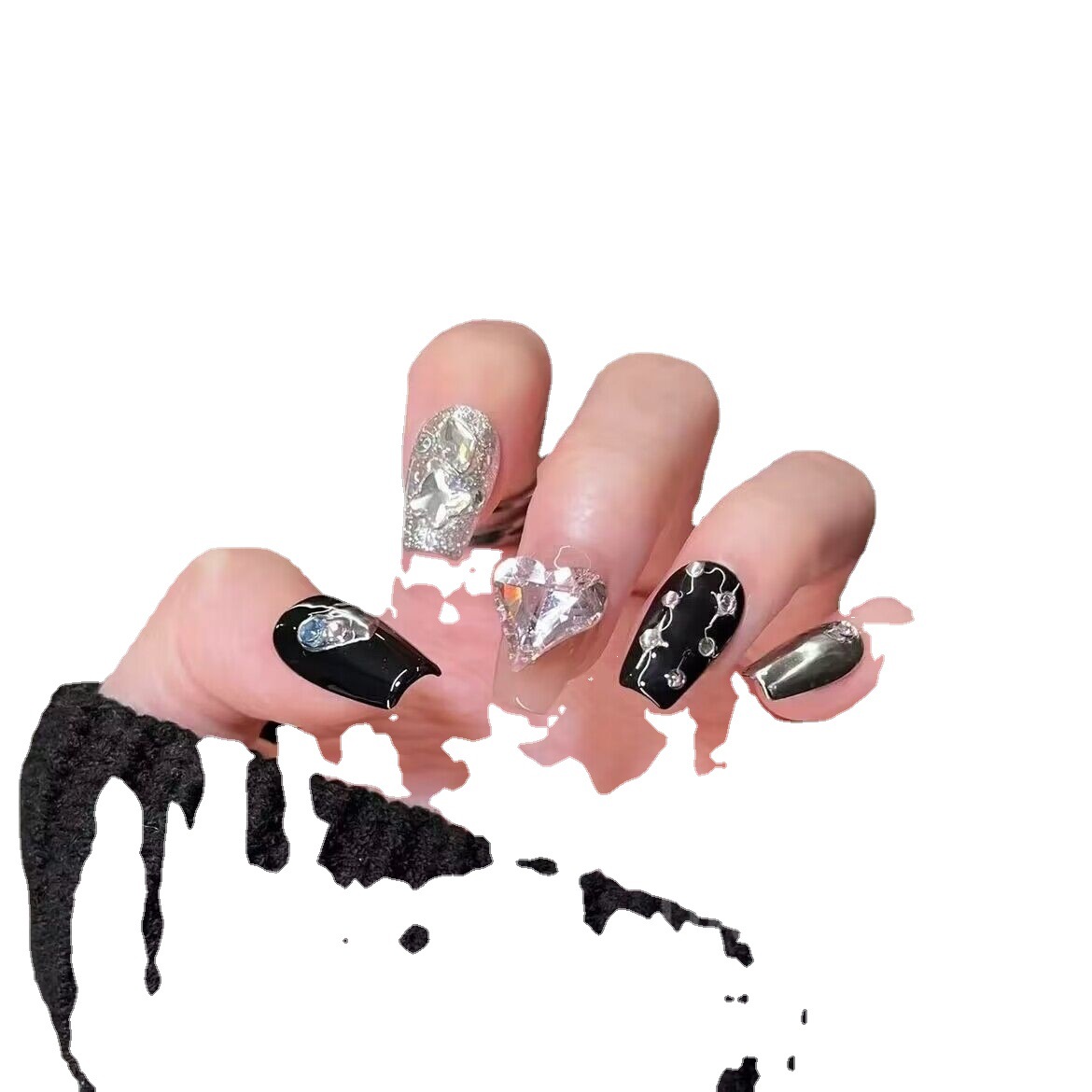 艺禾欧美超长纯手工穿戴甲爆闪满钻轻奢美甲假指甲贴片穿戴甲高级