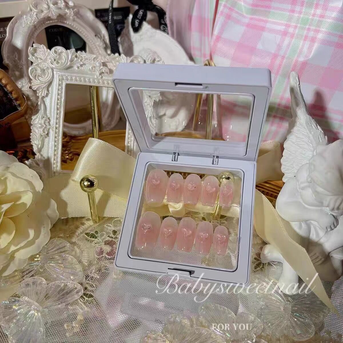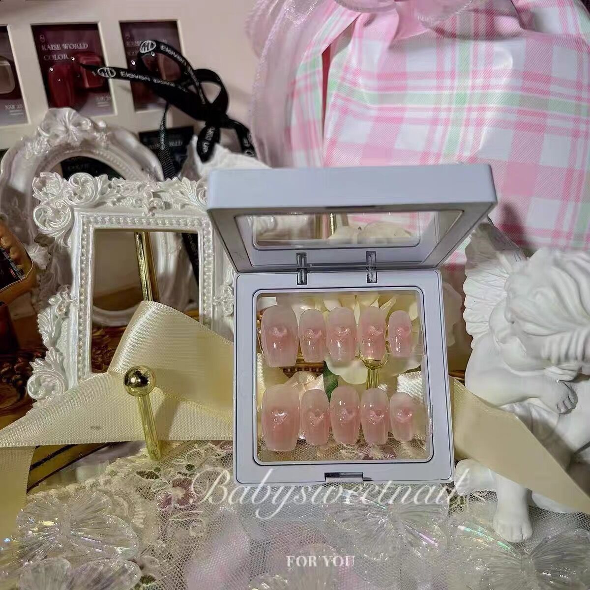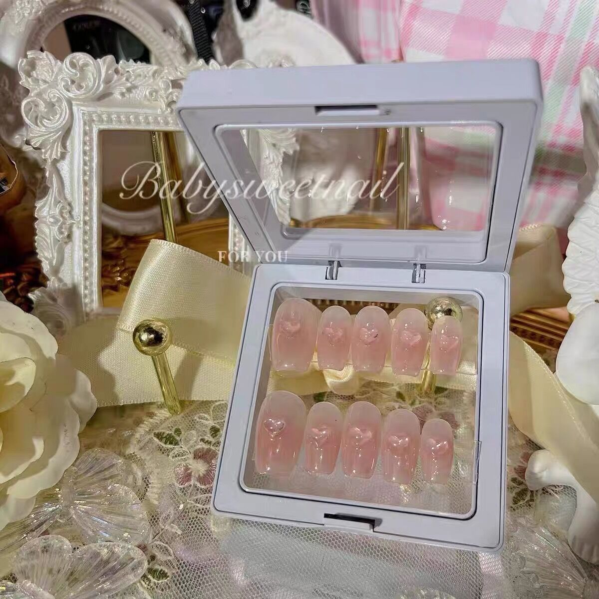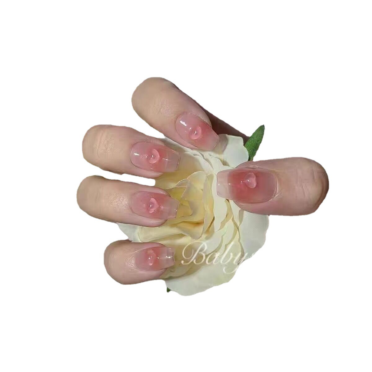 纯手工光疗穿戴甲腮红光变爱心穿戴甲批发成品重复使用美甲贴片