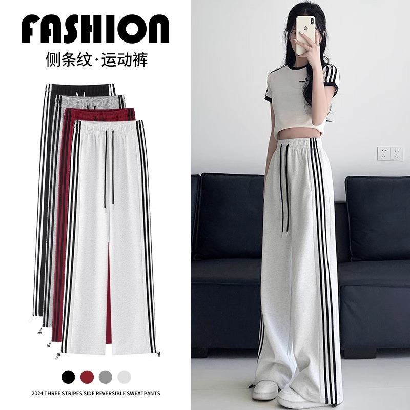 美式运动裤女宽松束脚春秋新款高腰显瘦直筒休闲小个子阔腿裤