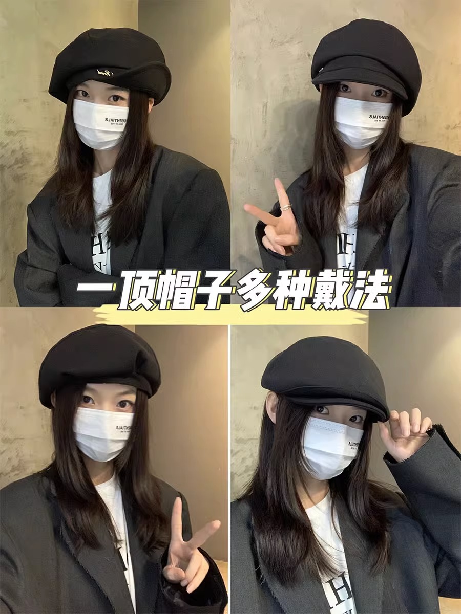 韩系黑色贝雷帽女新款秋冬显脸小日系八角帽洋气百搭画家帽潮