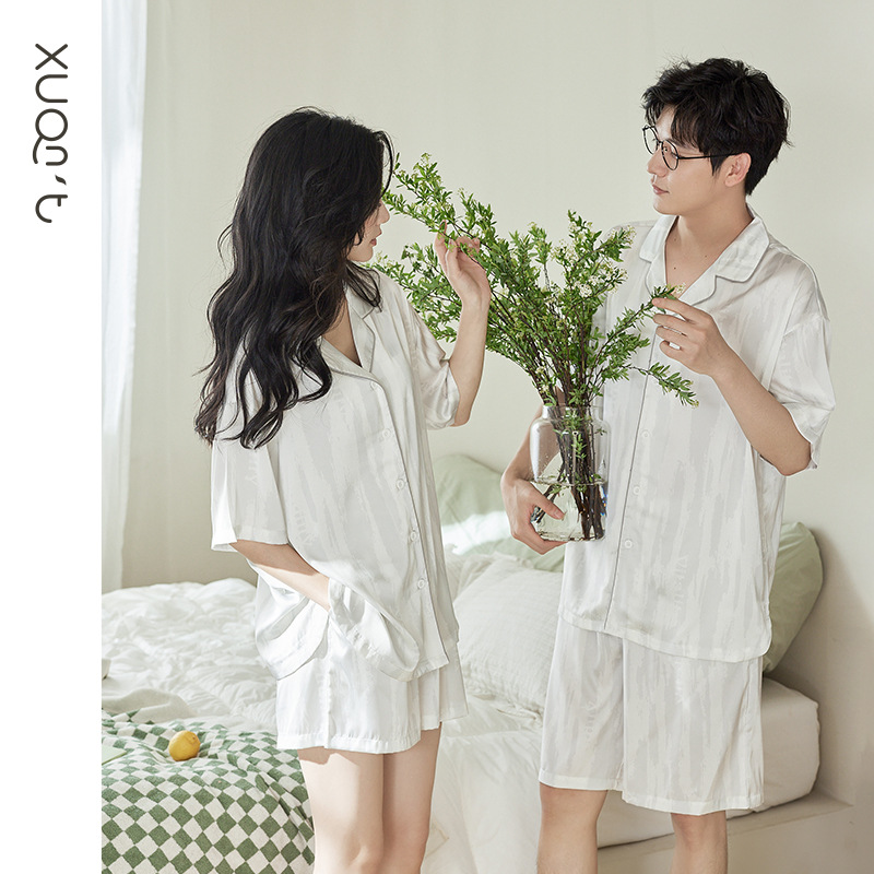 【凉感型】情侣睡衣夏季冰丝短袖时尚简约女款家居服男夏天两件套