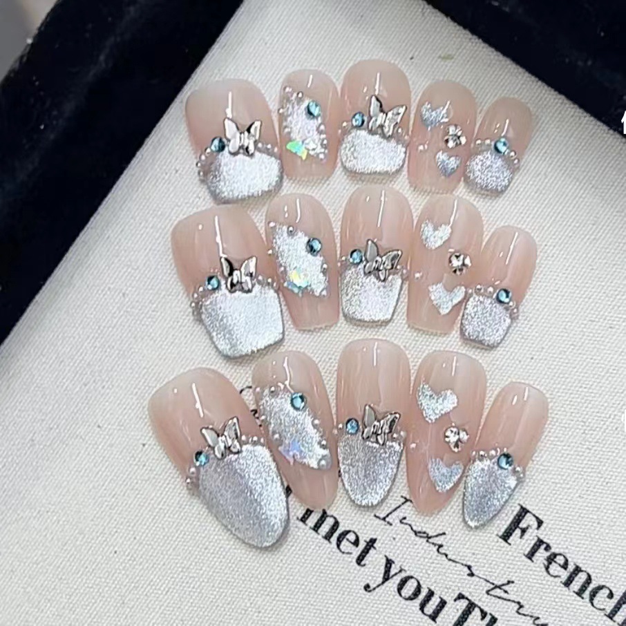 纯手工光疗穿戴蝴蝶泉批发成品重复使用美甲贴片可拆卸穿戴甲