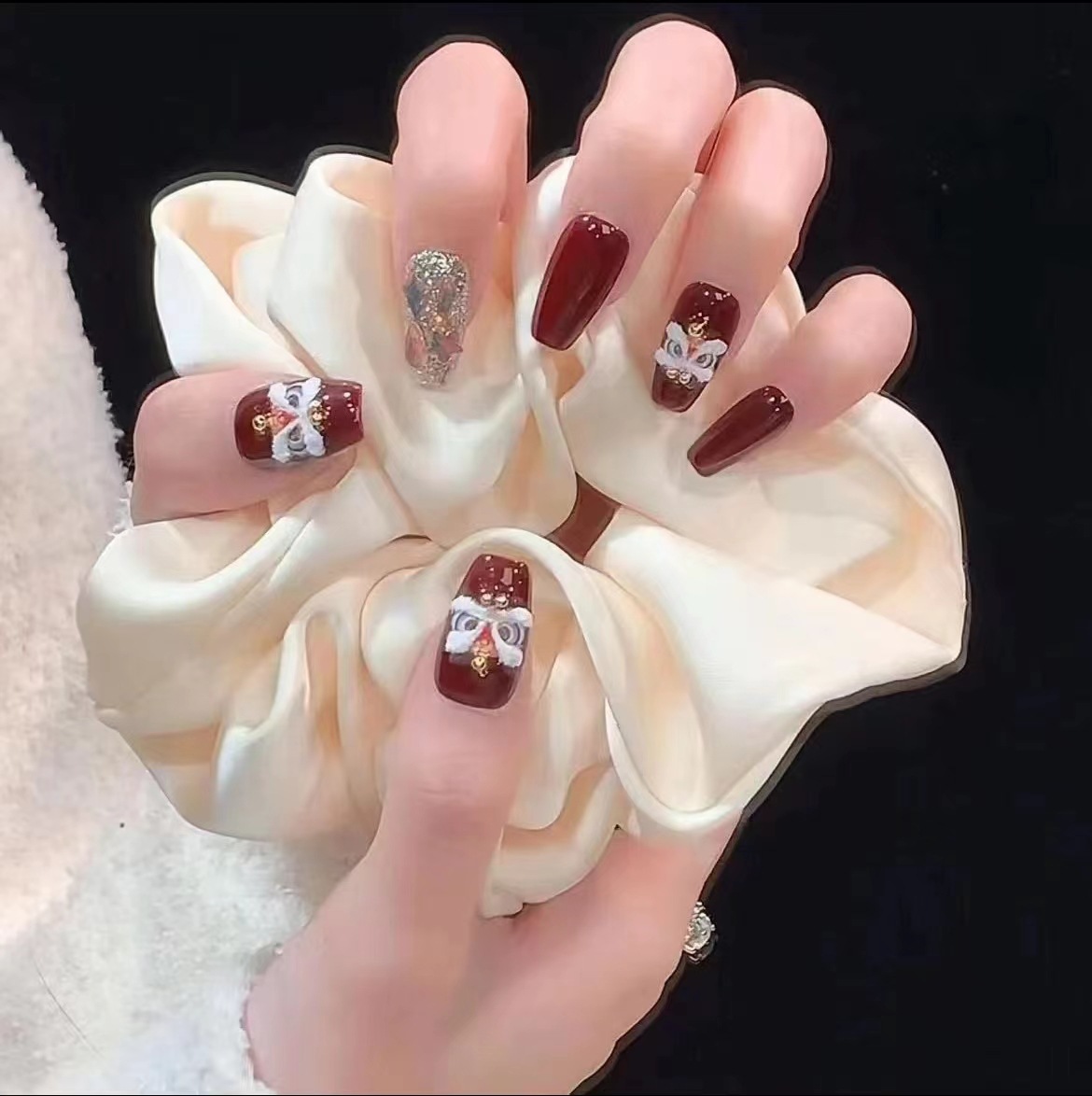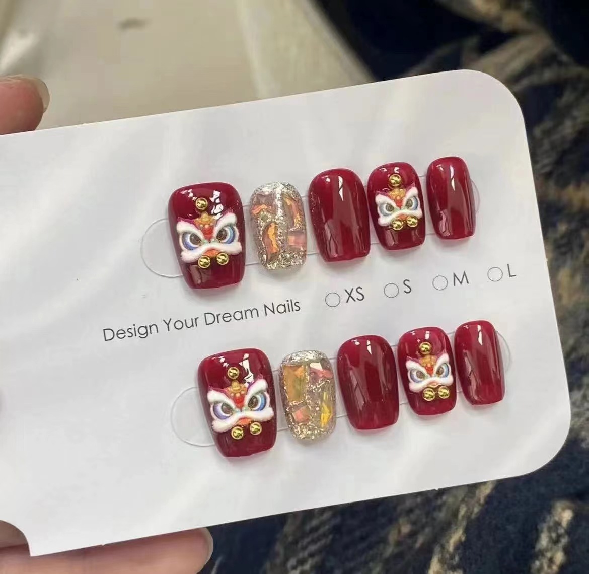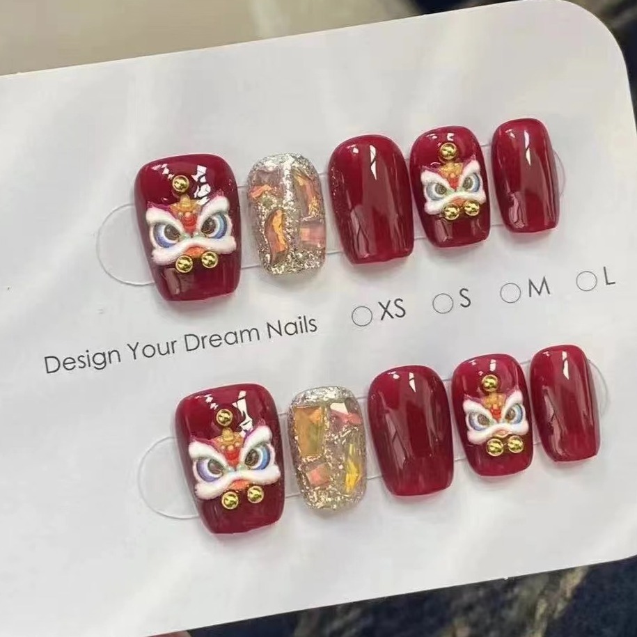 现货当天发纯手工光疗穿戴甲醒狮穿戴甲批发成品重复使用美甲贴片