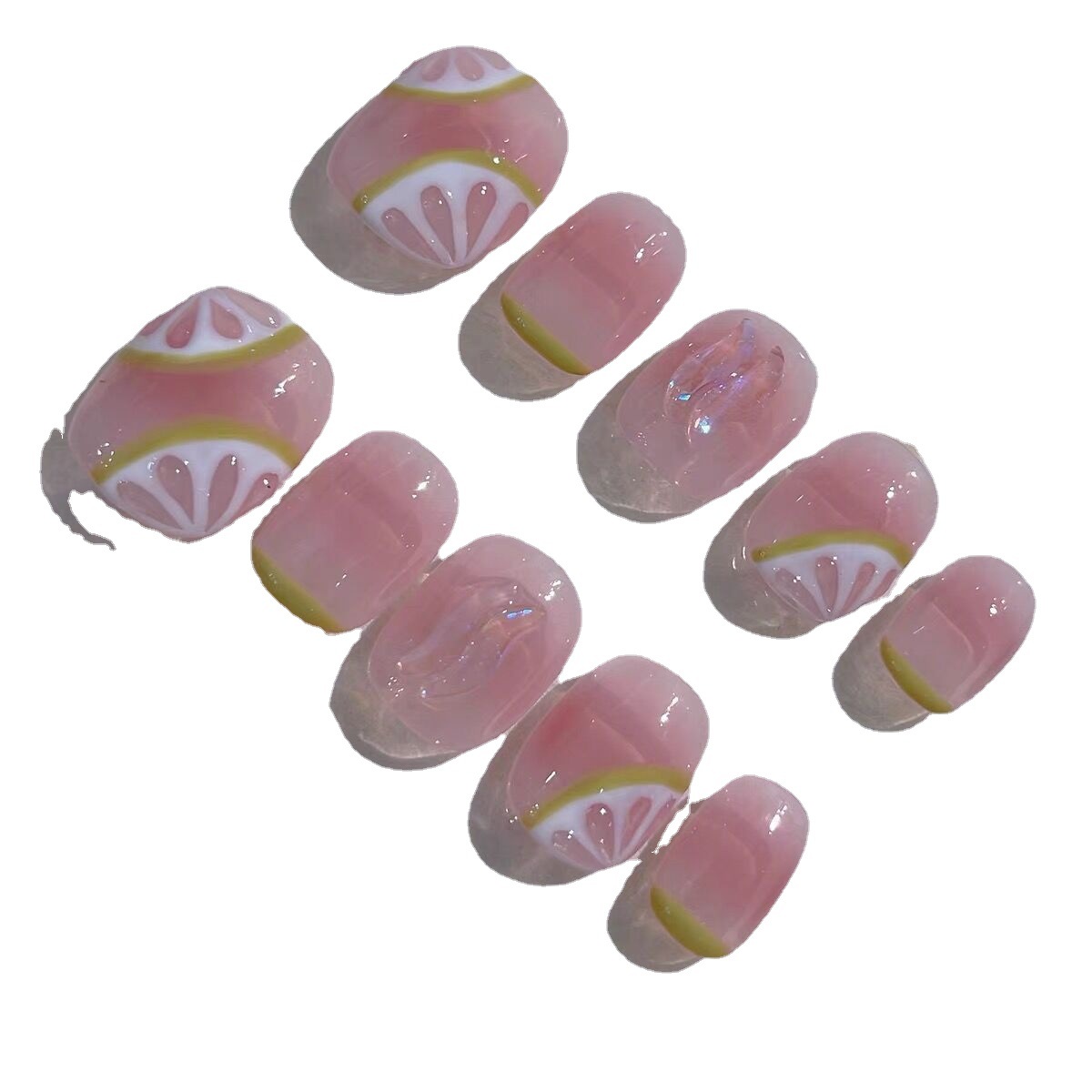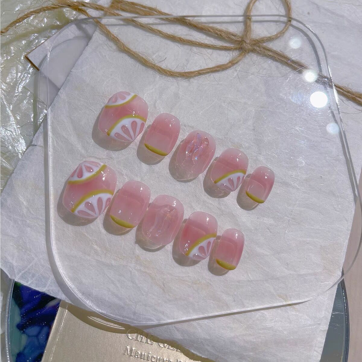 纯手工光疗穿戴甲短方圆绿柠檬穿戴甲批发成品重复使用美甲贴片