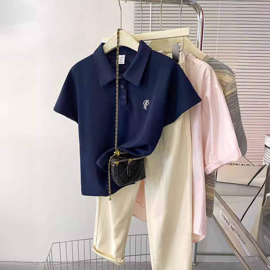 美式复古polo衫翻领t恤女夏季设计感小众小个子短袖体恤上衣百搭