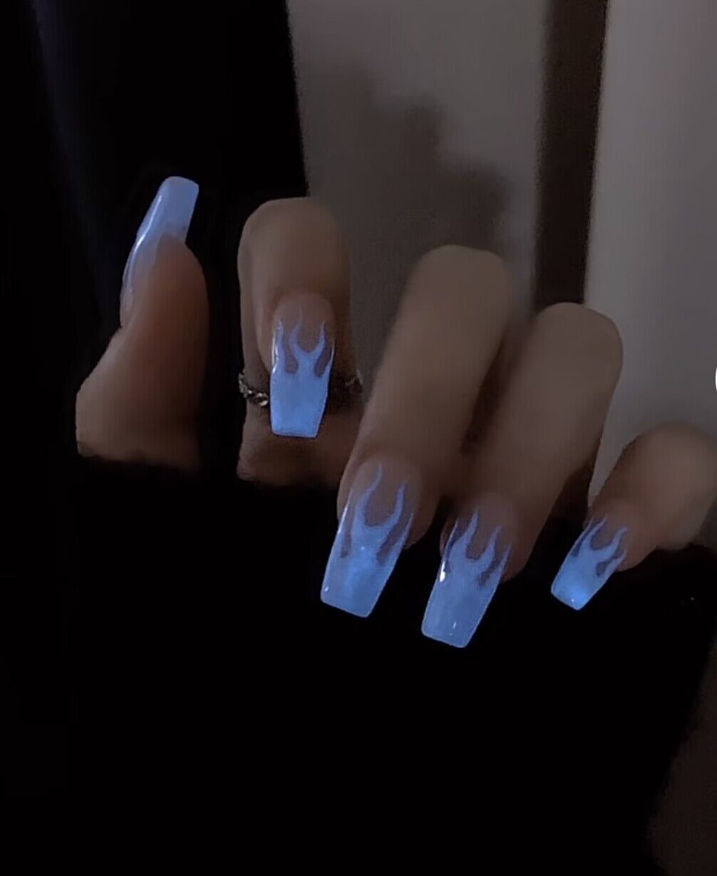 纯手工光疗穿戴甲片苍兰诀业火同款爆款夜光火焰美甲穿戴甲批发成