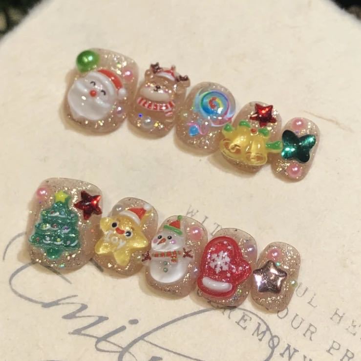 纯手工光疗穿戴甲圣诞派对批发成品重复使用美甲贴片可拆卸猫