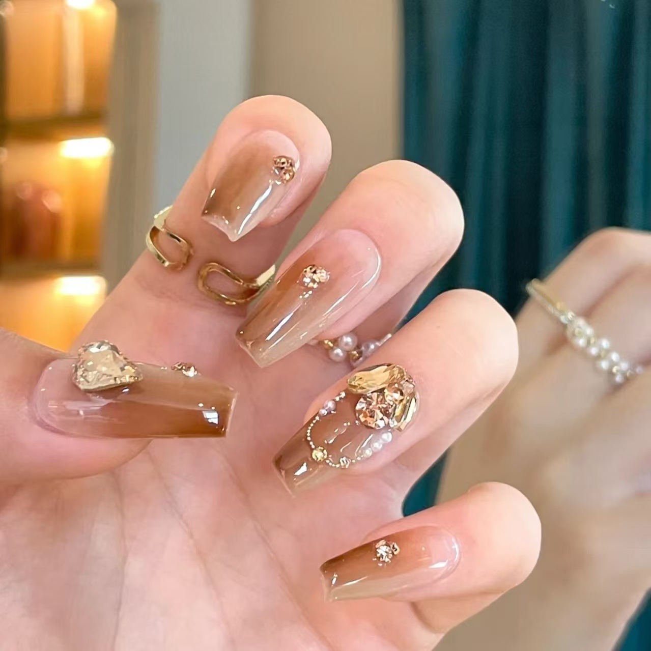 纯手工穿戴甲富家千金美甲纯欲绝美穿戴美甲美拉德风可拆卸穿戴甲