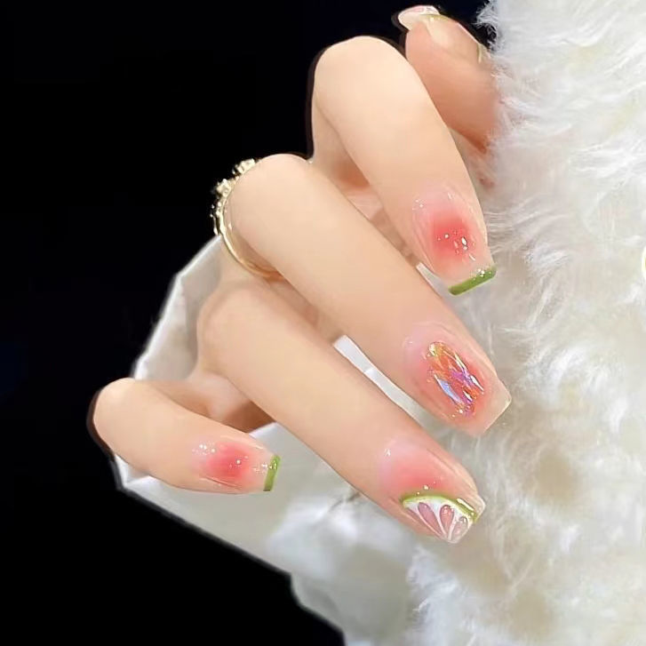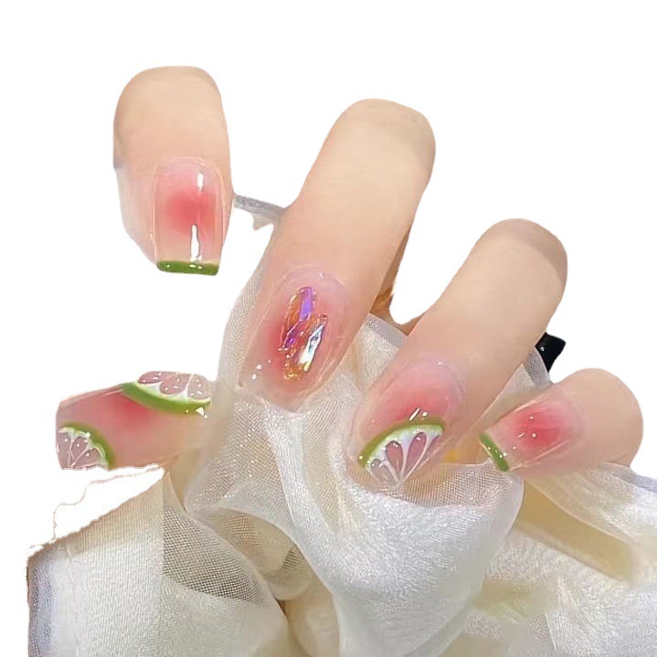 纯手工光疗穿戴甲极光绿柠檬穿戴甲批发成品重复使用美甲贴片