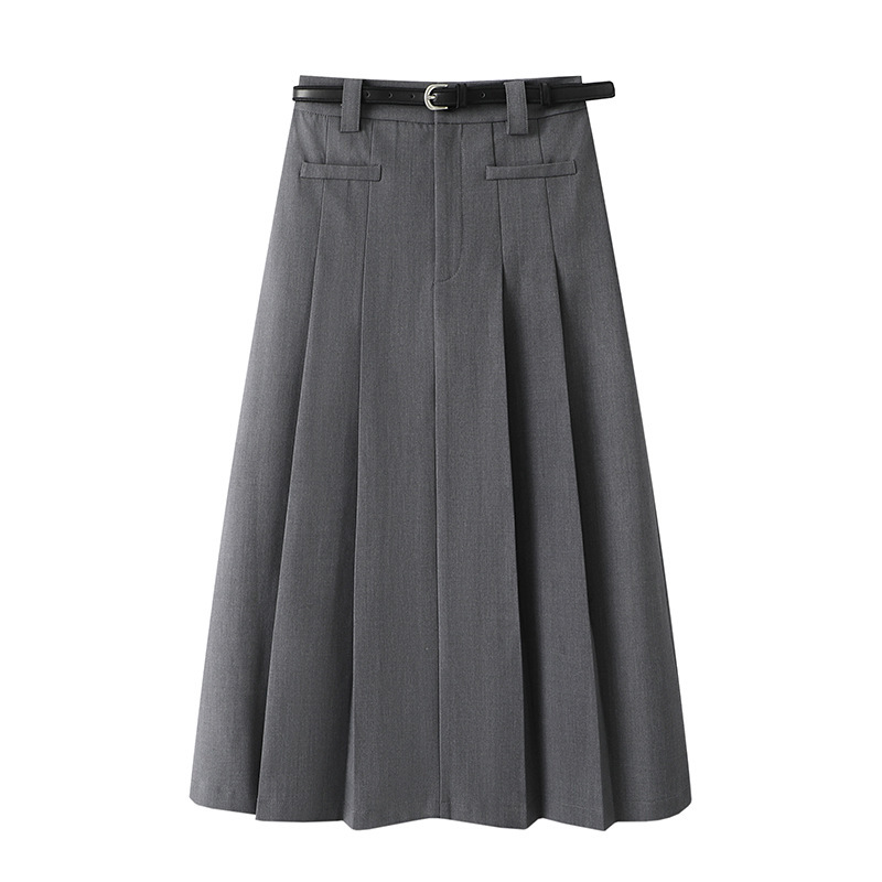半身裙女长裙新款秋装中长款灰色显瘦马面裙A字裙百褶裙