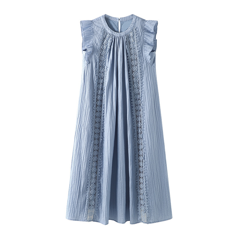 小飞袖蕾丝背心裙女夏新款宽松无袖连衣裙娃娃裙子