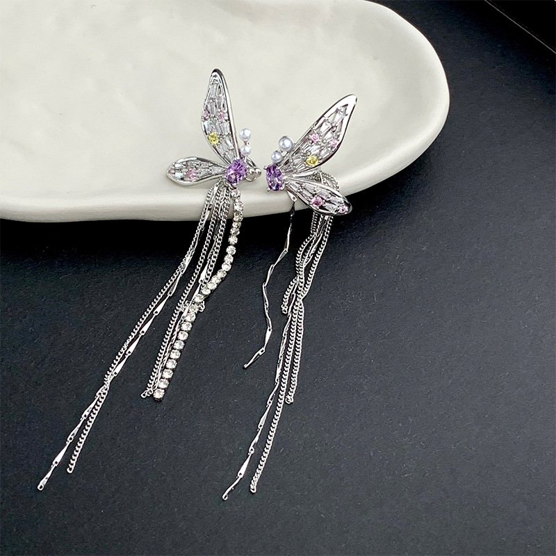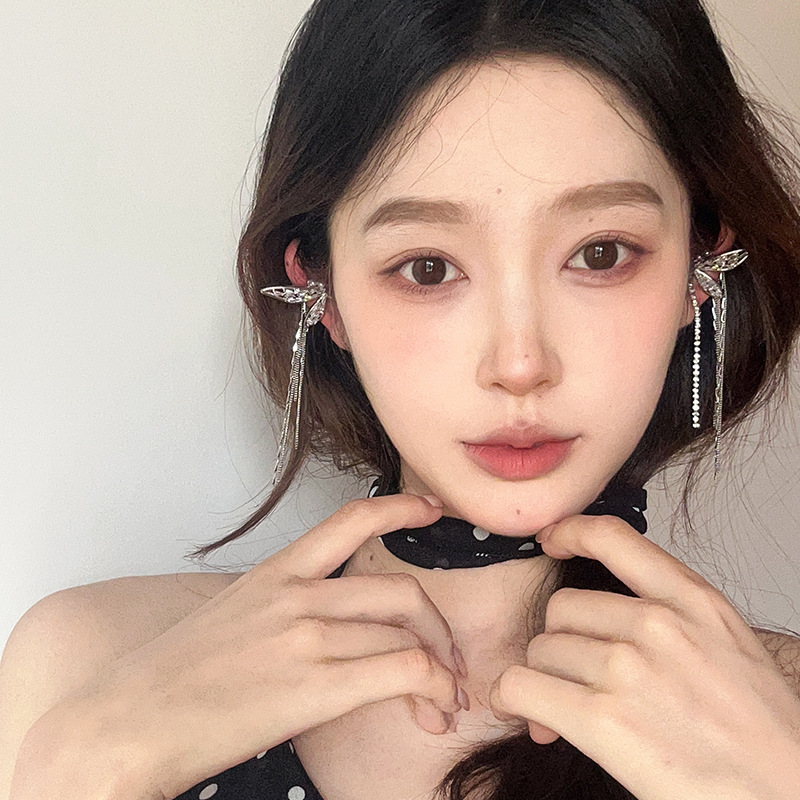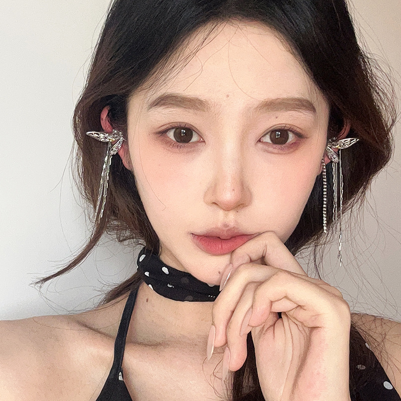 精灵耳饰仙气镶钻蝴蝶流苏耳夹独特小众设计超仙长款无耳洞耳骨夹