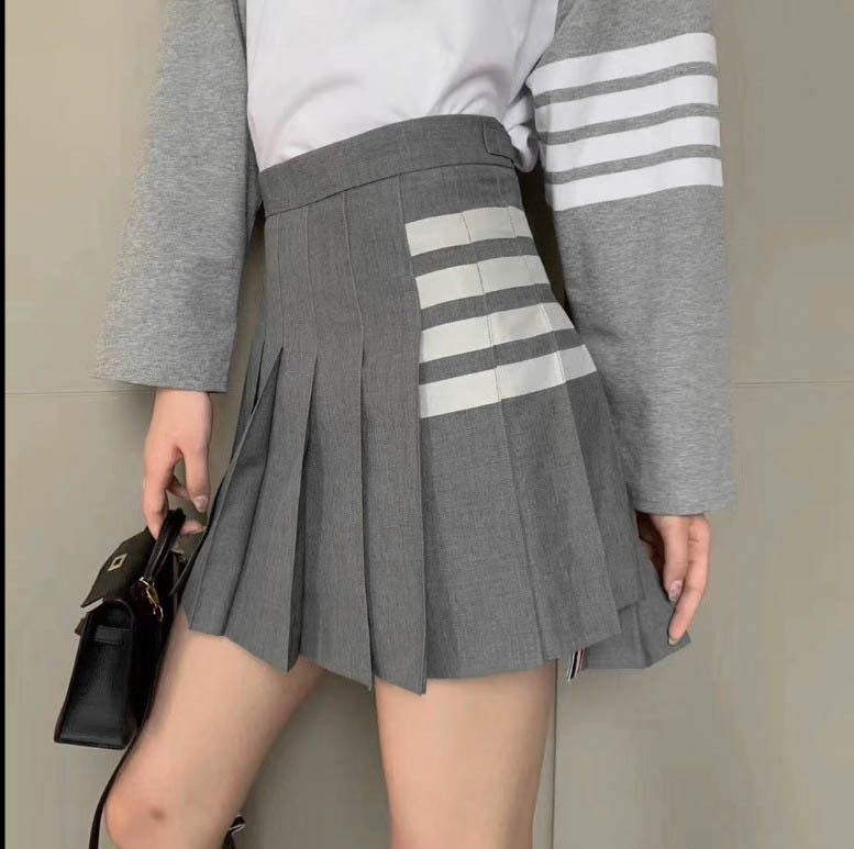 tb百褶裙女夏季新款前短后长四道杠经典高腰A字学院风半身裙