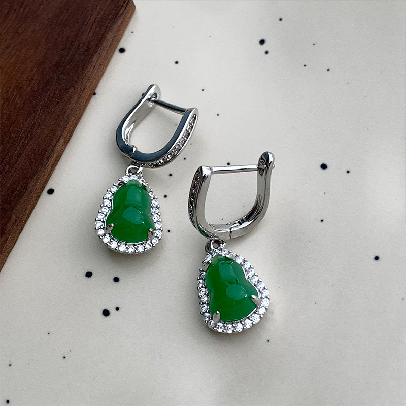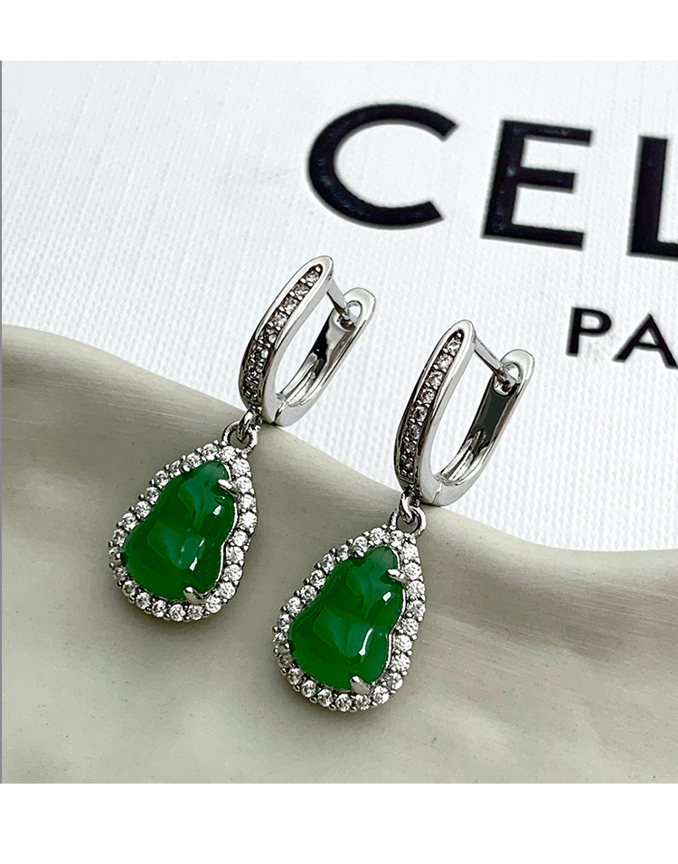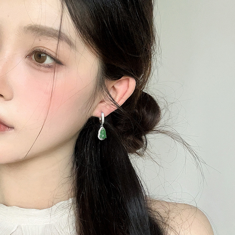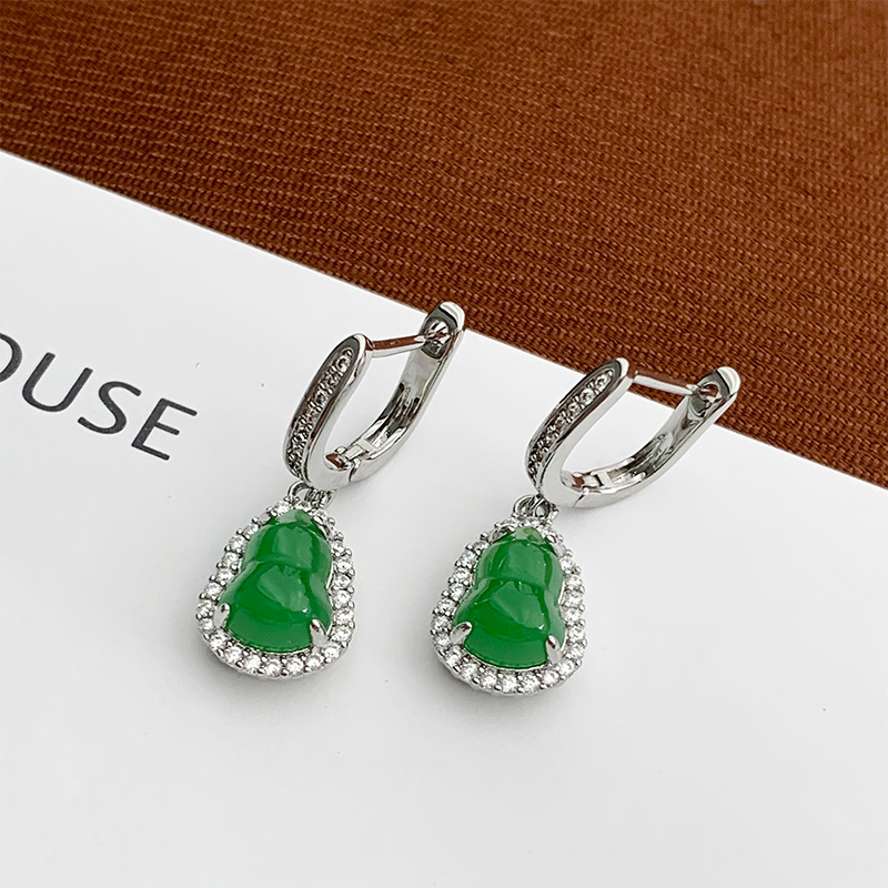 国风新中式绿色葫芦耳环气质复古耳坠轻奢高级感耳扣百搭旗袍耳饰
