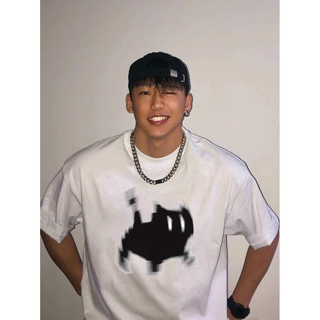 美式潮流猫咪印花短袖t恤男士夏季新款宽松高级纯棉休闲百搭上衣