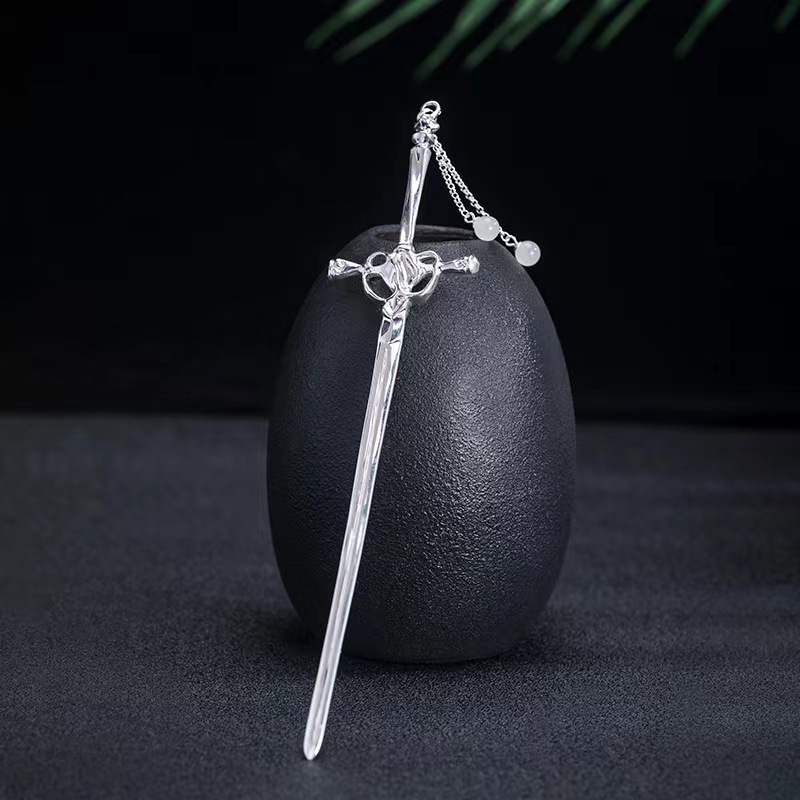 新中式宝剑吊坠发簪简约头饰加硬金属发钗后脑勺网红头饰簪子古典