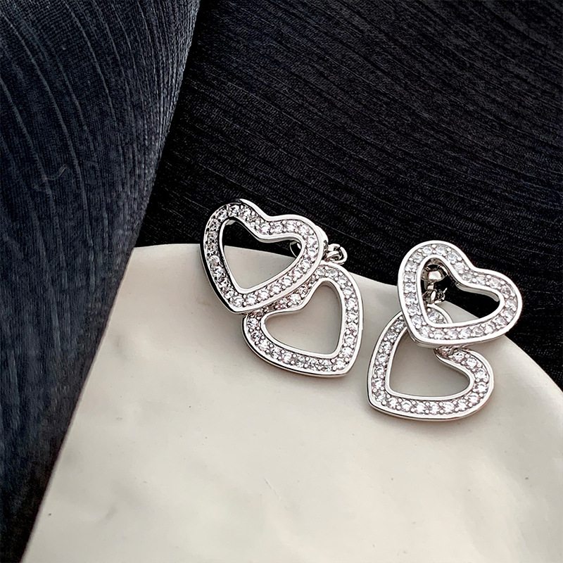 气质轻奢锆石镂空爱心耳环女年新款高级感耳钉通勤简约耳饰潮