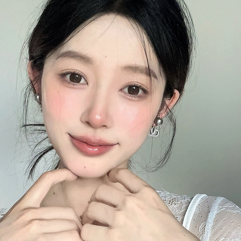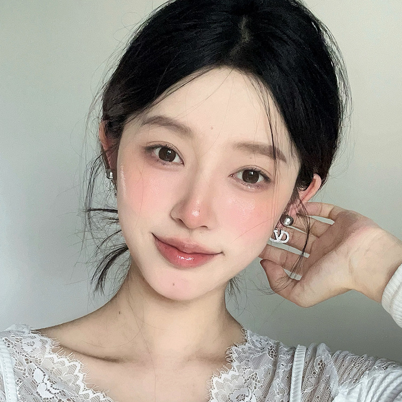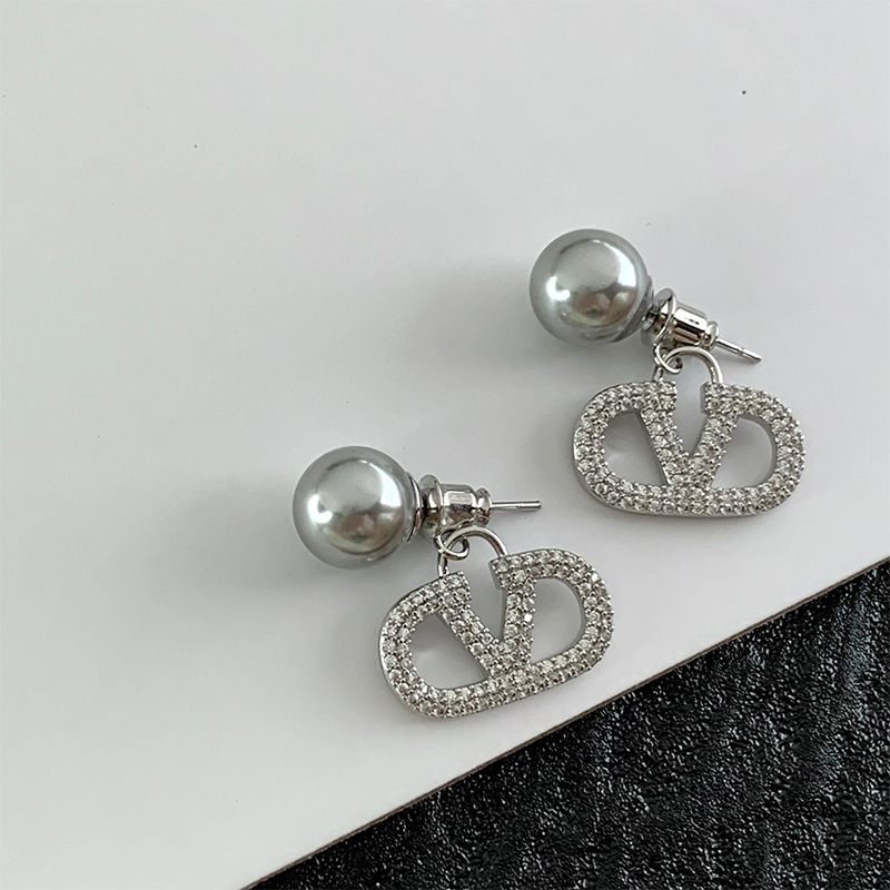 法式气质灰色珍珠满钻字母v耳环 轻奢高级感精致前后两戴耳钉耳饰