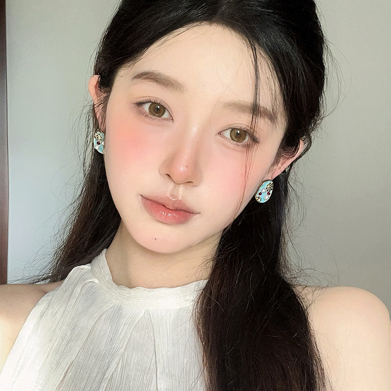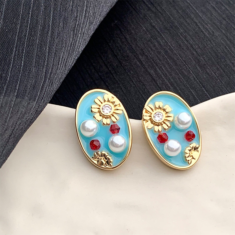 法式复古滴釉花朵珍珠耳环小众设计感高级轻奢气质耳钉新款耳饰