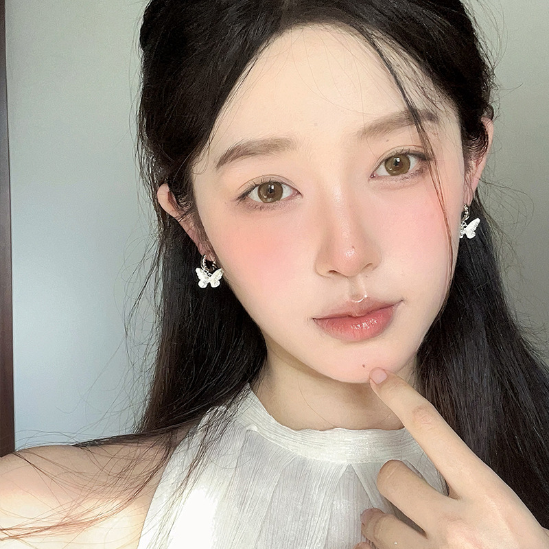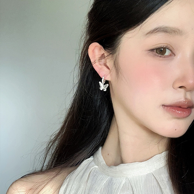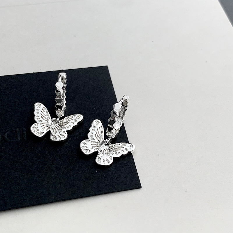 简约百搭银色蝴蝶耳圈冷淡风高级感耳环女夏季新款清冷感耳饰耳坠