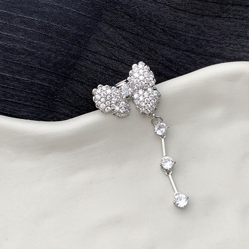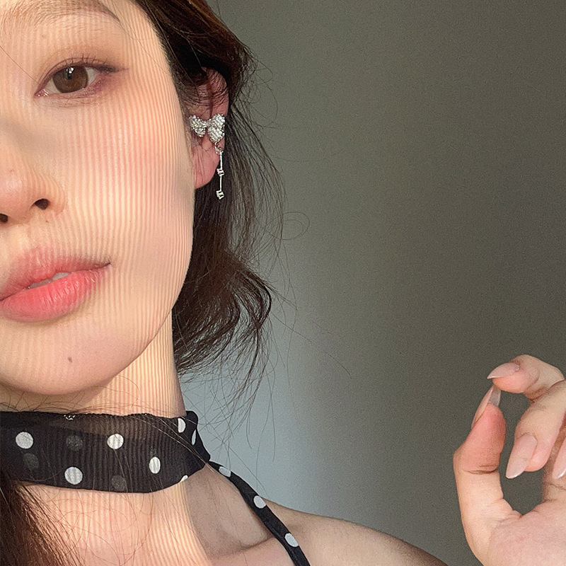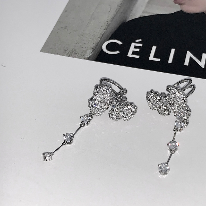 精致高级感满钻蝴蝶结流苏耳夹小众气质无耳洞耳骨夹轻奢锆石耳饰