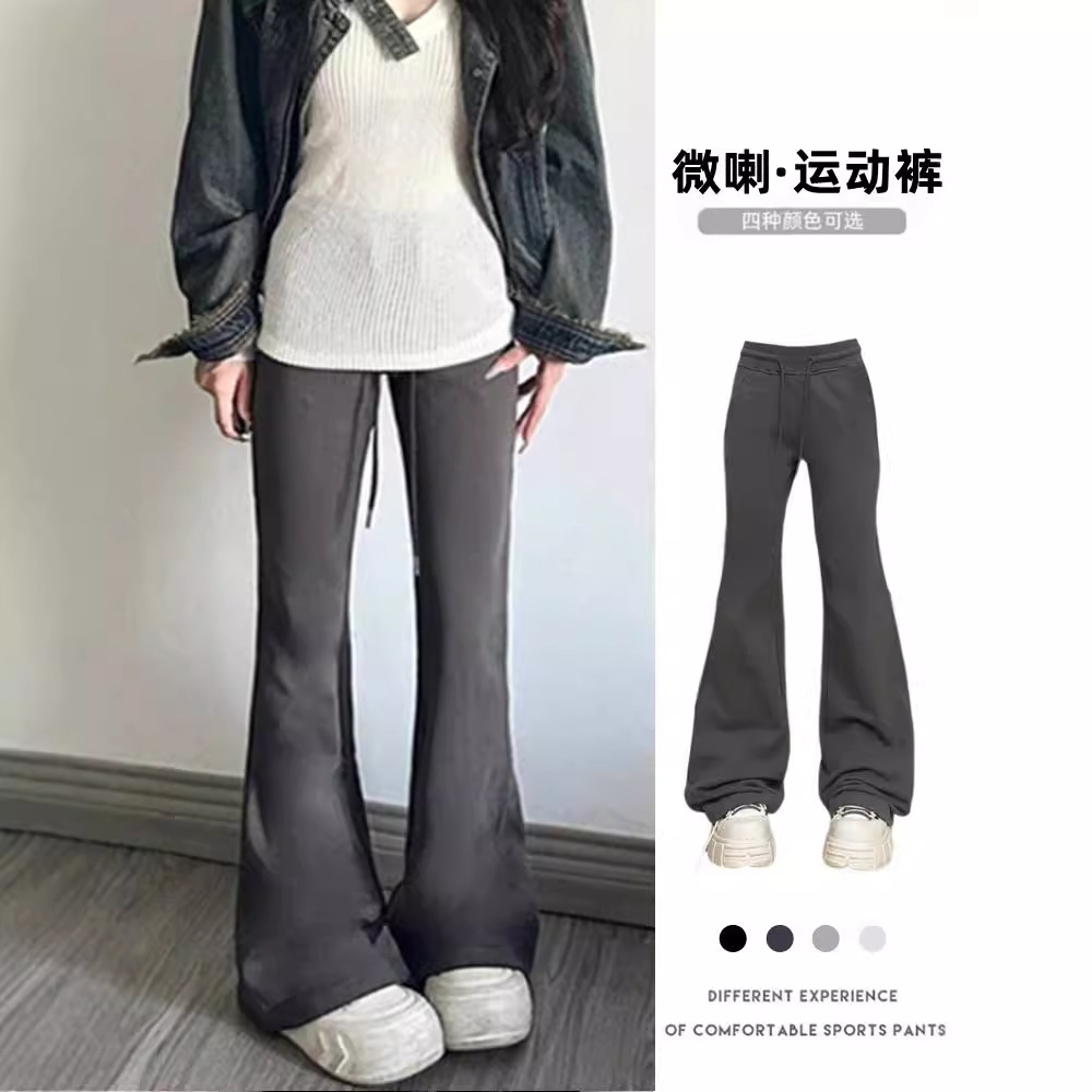 美式灰色高腰微喇裤辣妹显瘦拖地百搭新款运动休闲卫裤瑜伽裤