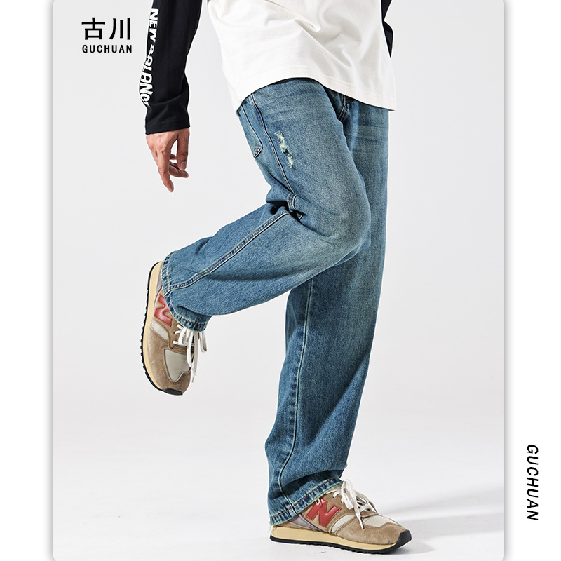 古川男装|CLEAN FIT风窄版阔腿牛仔裤男士百搭宽松垂感拖地长裤男