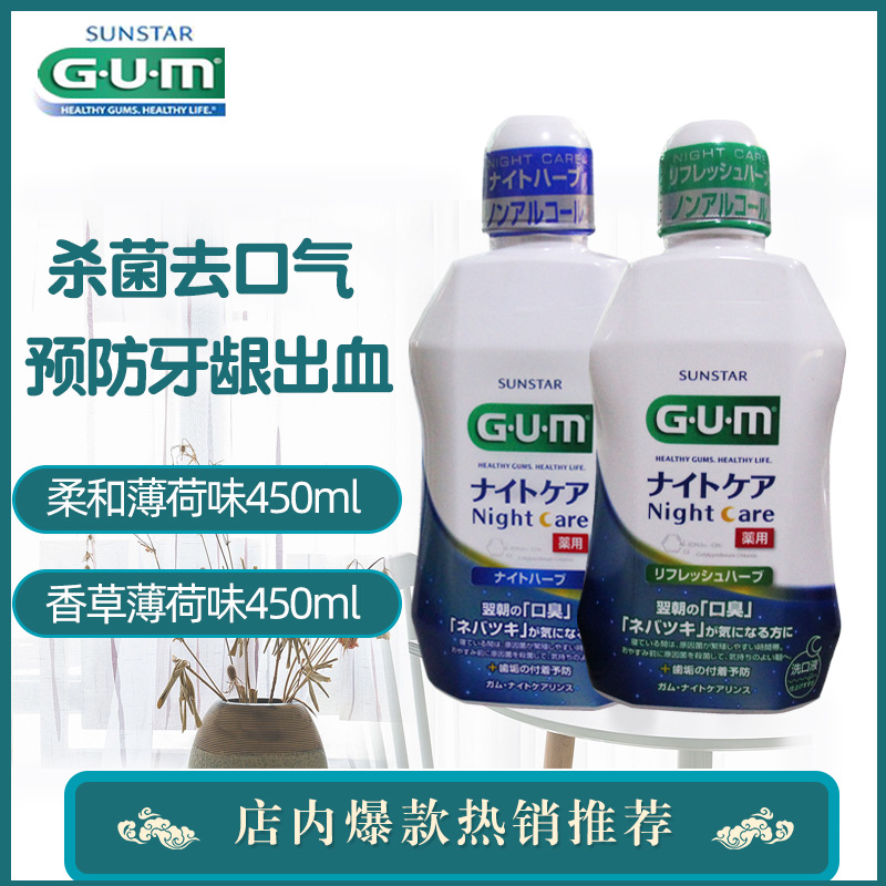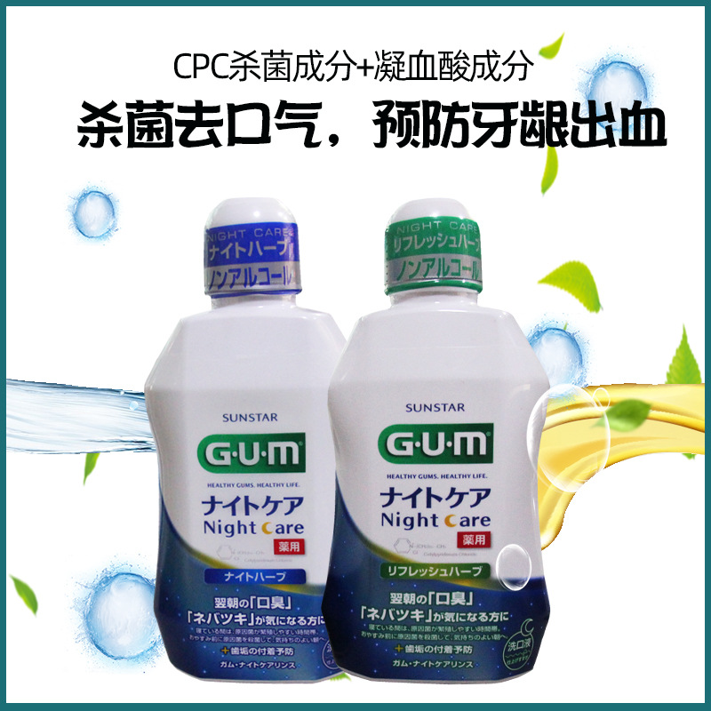 日本全仕康GUM牙周夜间护理漱口水450ml减牙渍护牙龈净白清新口气