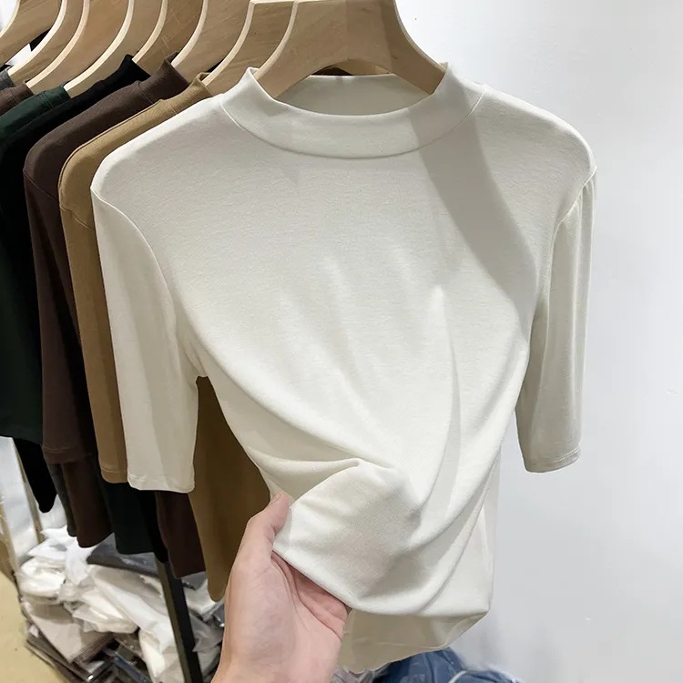 超手感莫代尔纯色百搭面膜t恤女春夏新款显瘦中袖上衣t恤打底衫潮