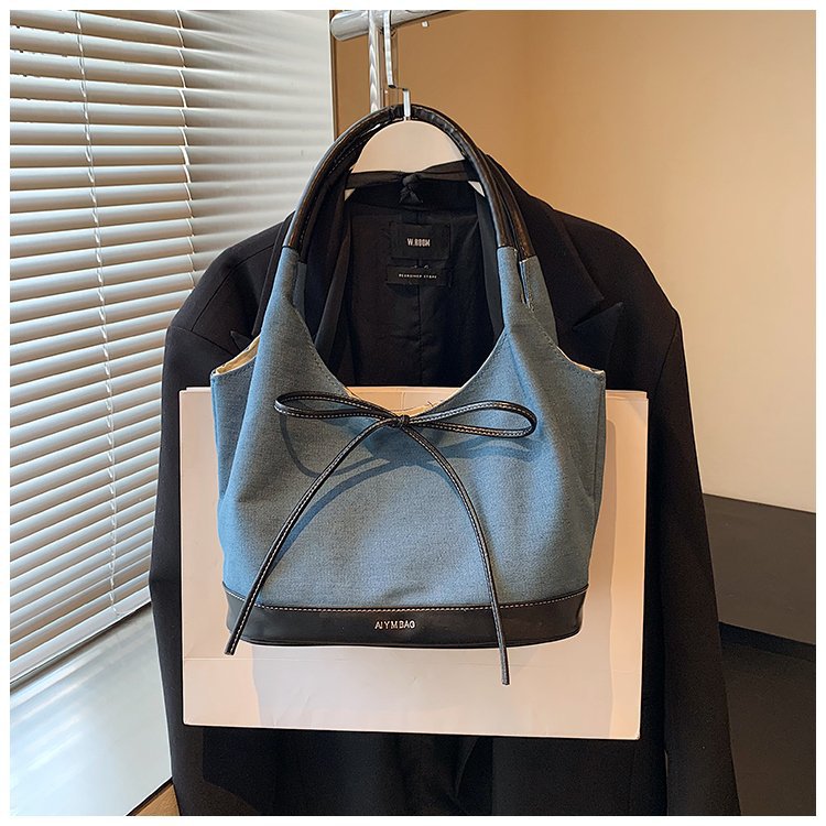 韩国小众复古拼接帆布托特包女单肩包手提包大容量通勤包腋下