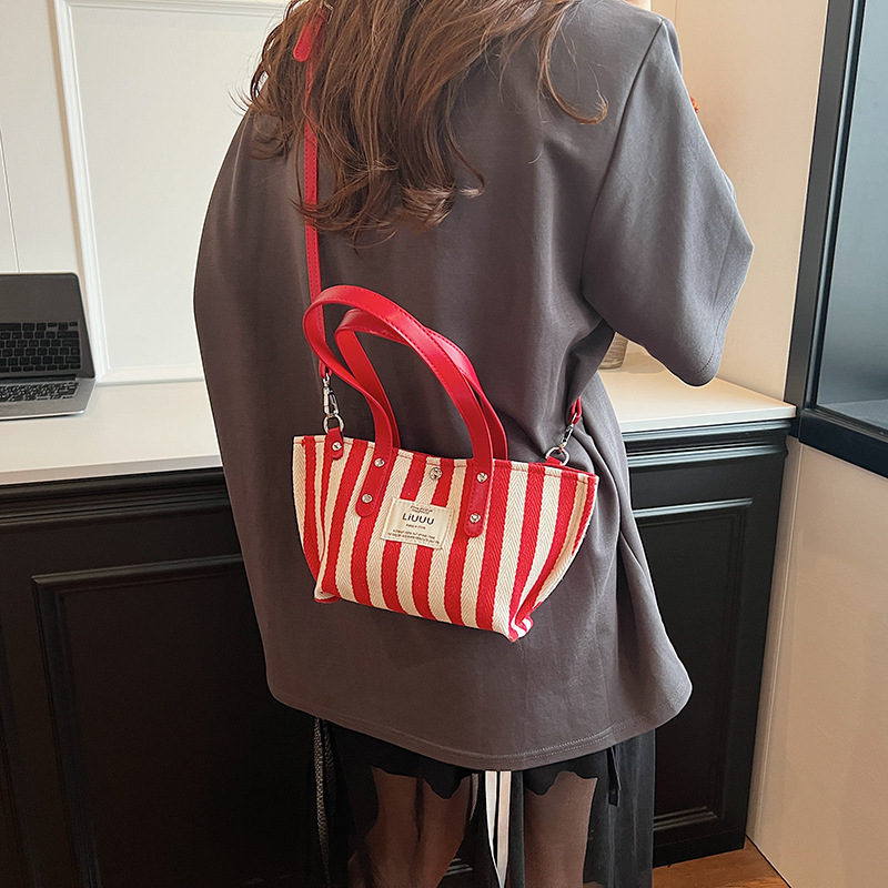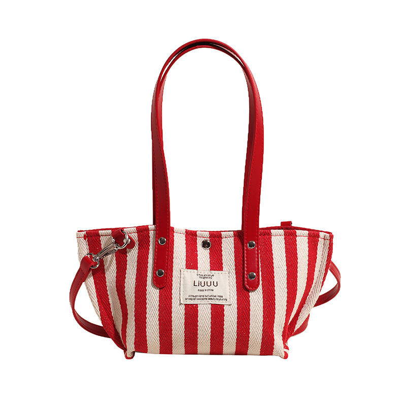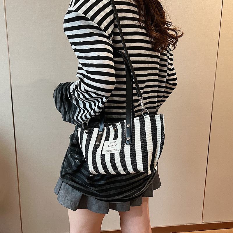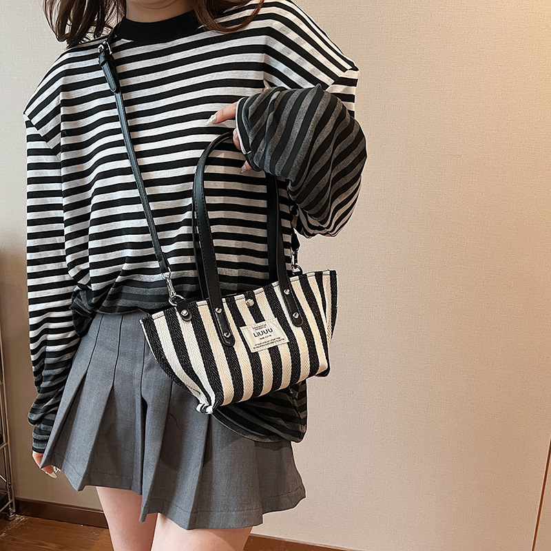 韩版腋下撞色条纹水桶包女夏季新款时尚潮单肩包小众高级感