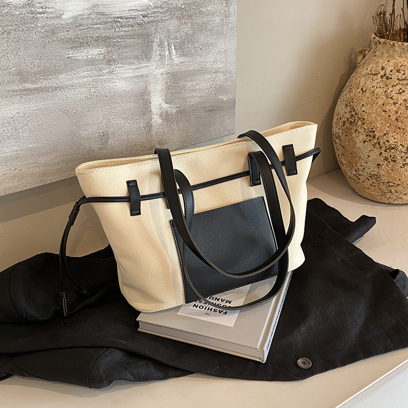 小众设计时尚单肩托特包包女大容量夏新款复古通勤撞色大包