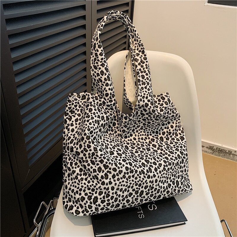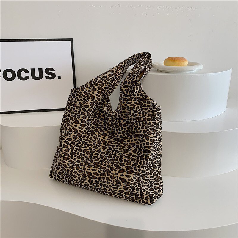 大学生上课通勤大容量托特包包女新款慵懒风豹纹帆布包单肩包