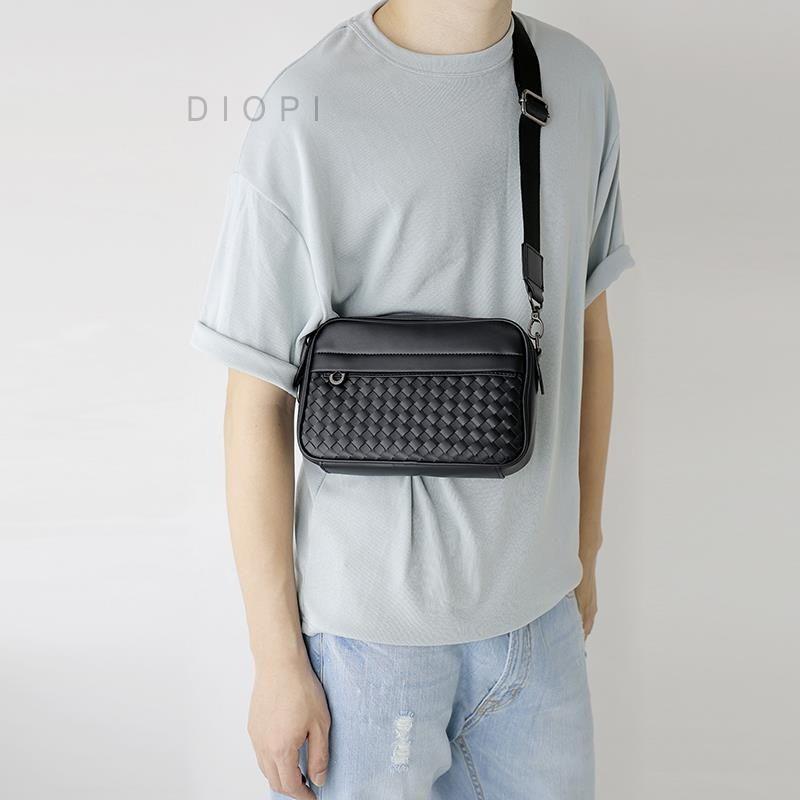 新款编织质感斜挎包男士街头方形小包ins潮流便捷手机单肩包