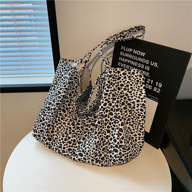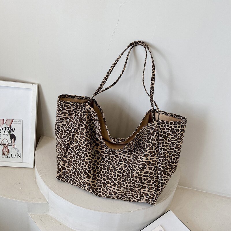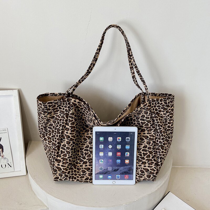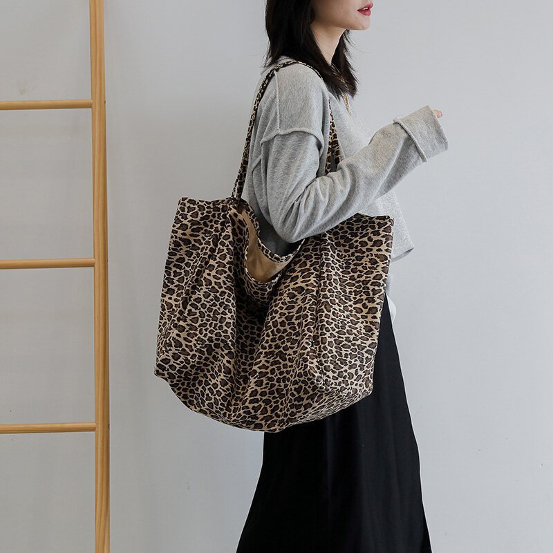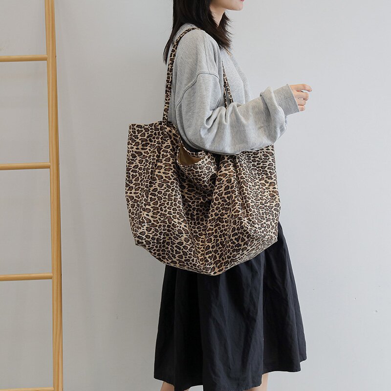 大容量豹纹帆布包包女新款休闲敞口单肩包时尚百搭手提托特包